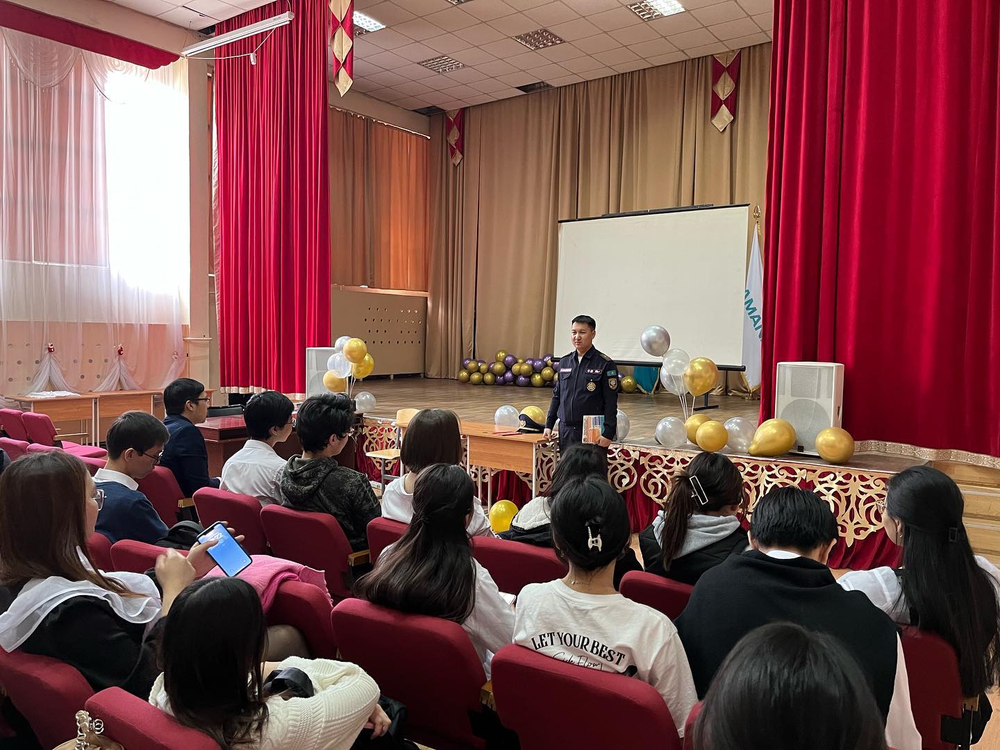 Алматы қаласы Әуезоа ауданы төтенше жағдайлар басқармасының бас маманы майор Дауренұлы Рауан мектебімізге келіп 11-сынып оқушыларымен Төтенше жағдайлардың алдын алу жөніңде түсіндірме баяндама жасады. Дабыл дорбасы не үшін керек? Оның ішінде қандай заттар юолуы керек екенін түсіндірді.