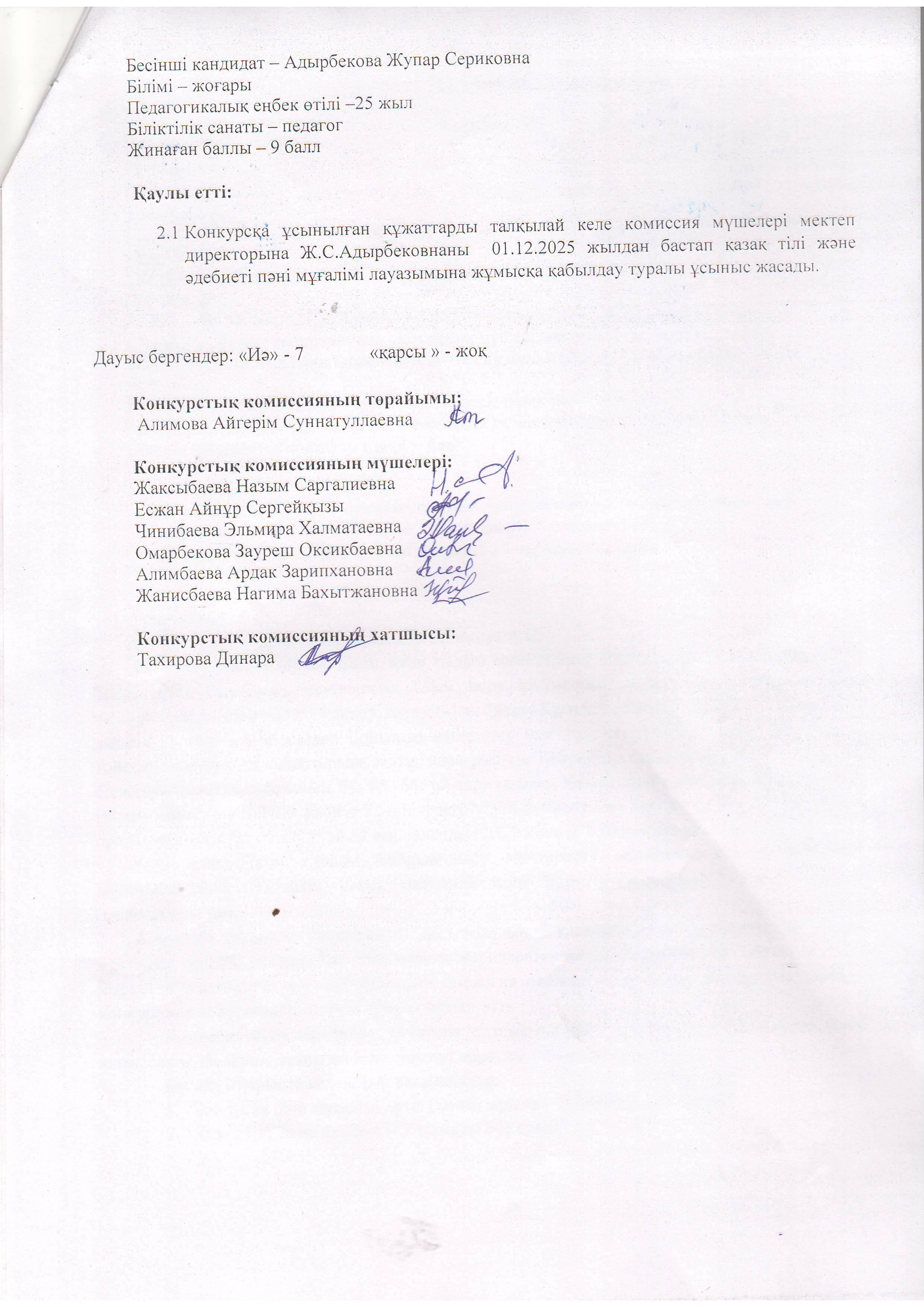 Конкурстық комиссия отырысының №2 хаттамасы