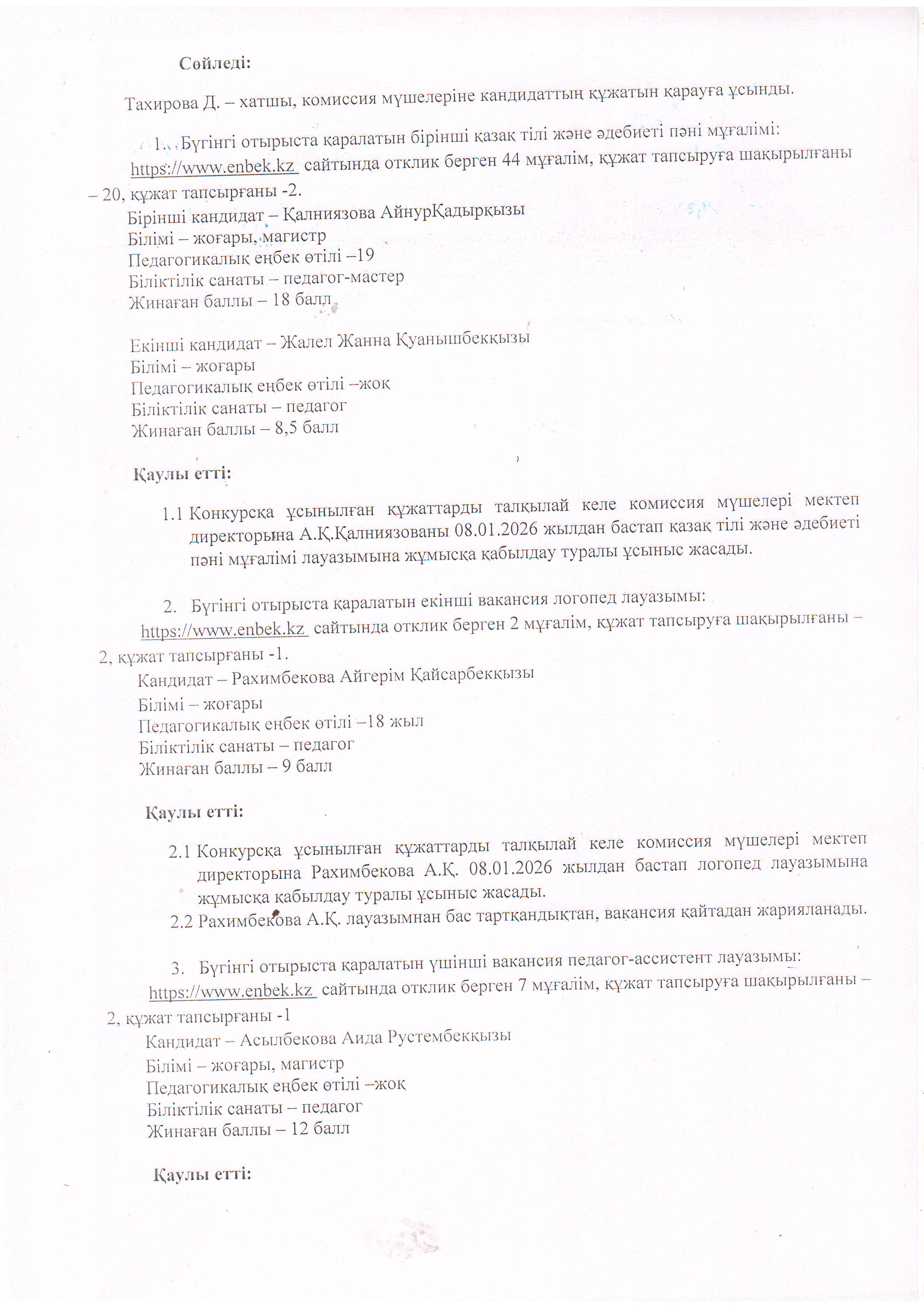 Конкурстық комиссия отырысының №2 хаттамасы