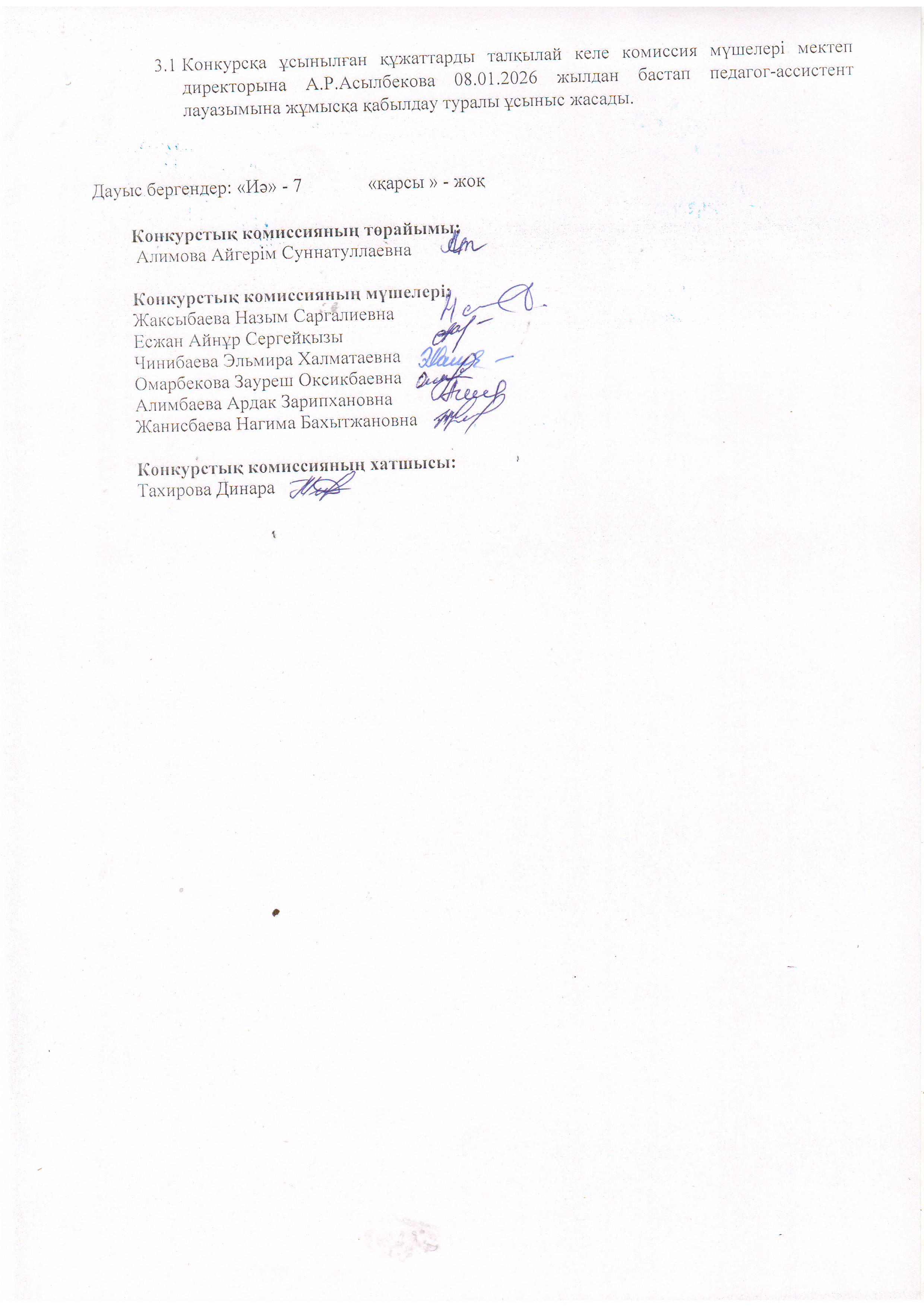 » Конкурстық комиссия отырысының №6 хаттамасы