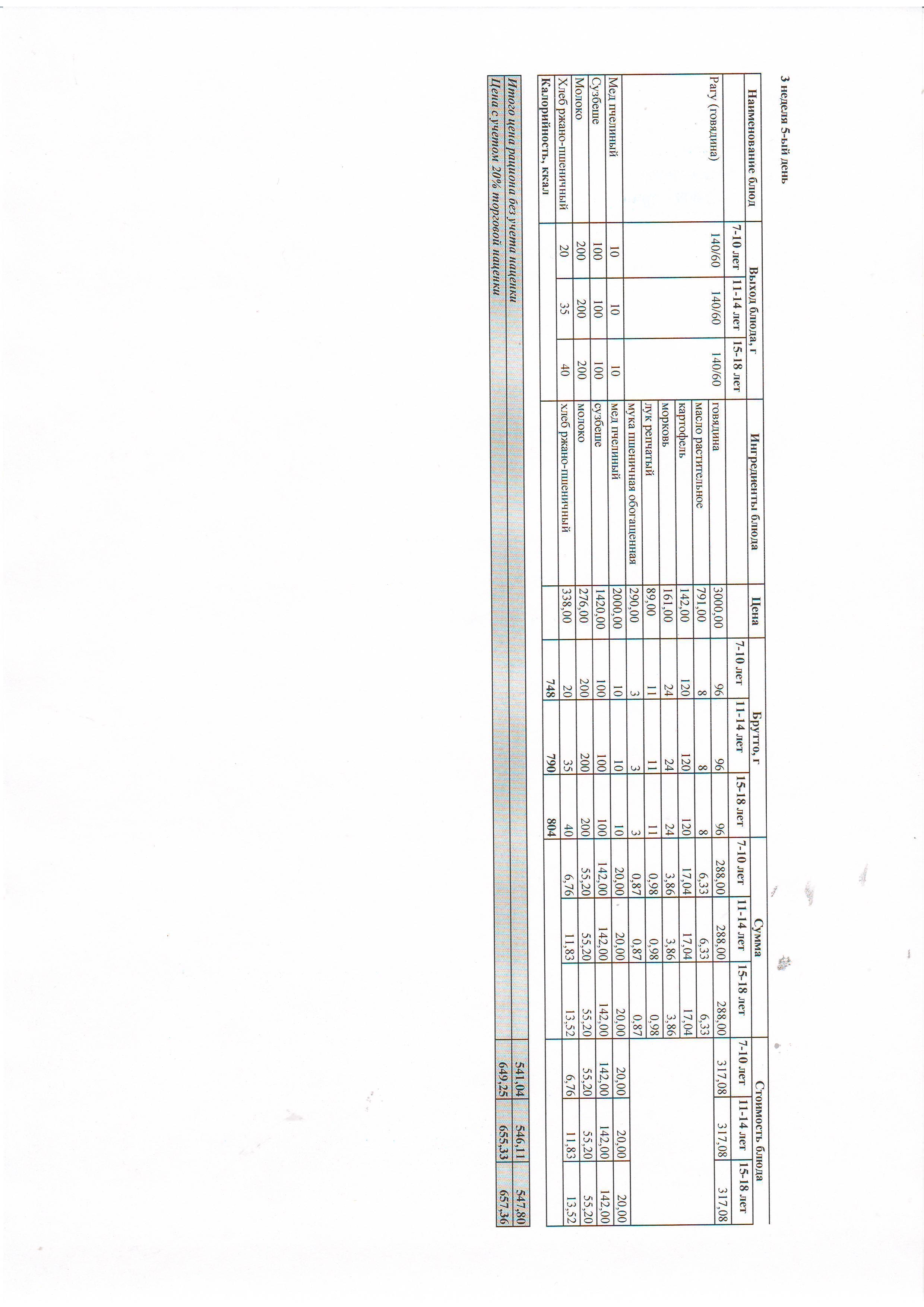 Рекомендованное меню, зима-весна 2021 г. 3 неделя
