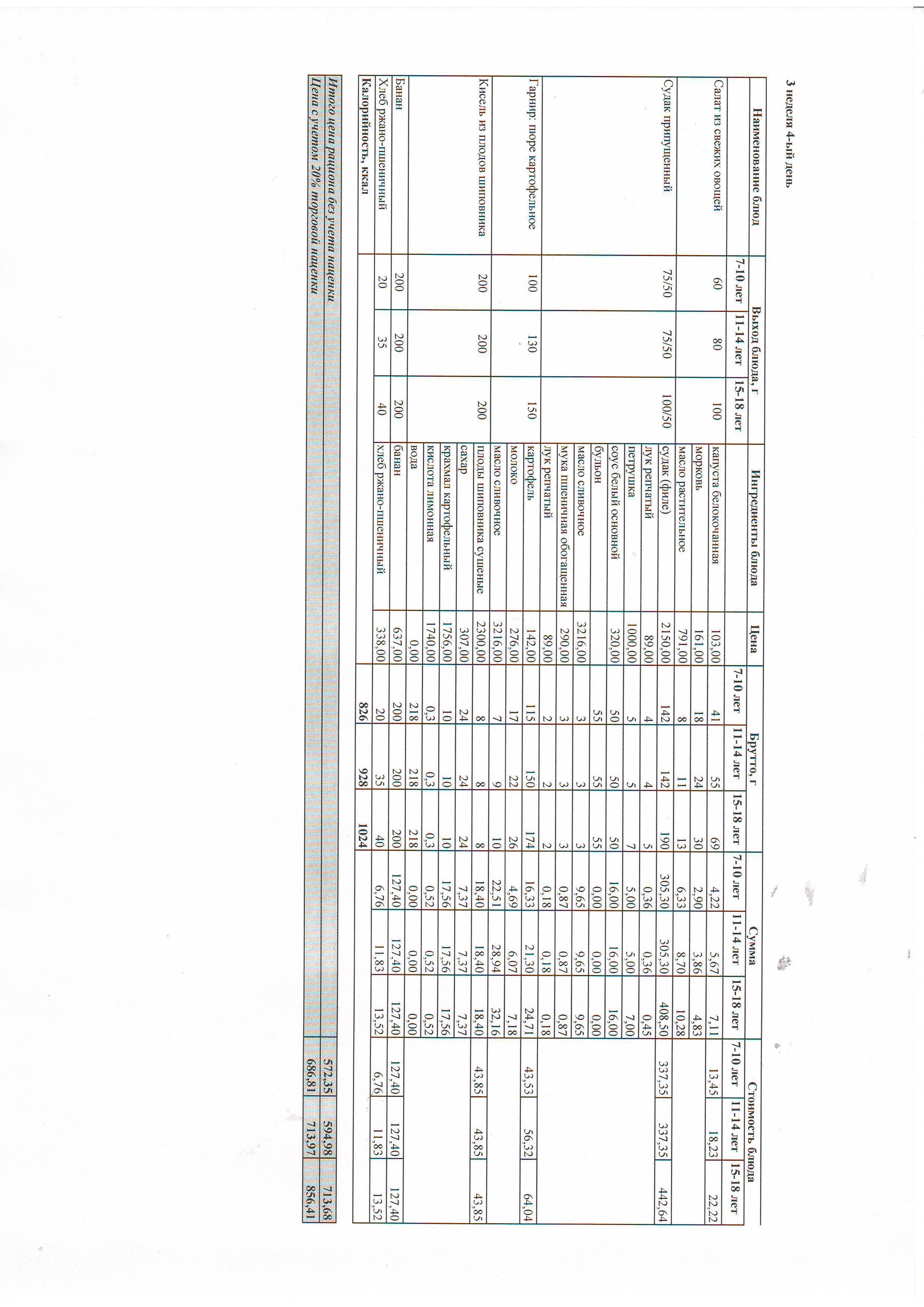 Рекомендованное меню, зима-весна 2021 г. 4 неделя