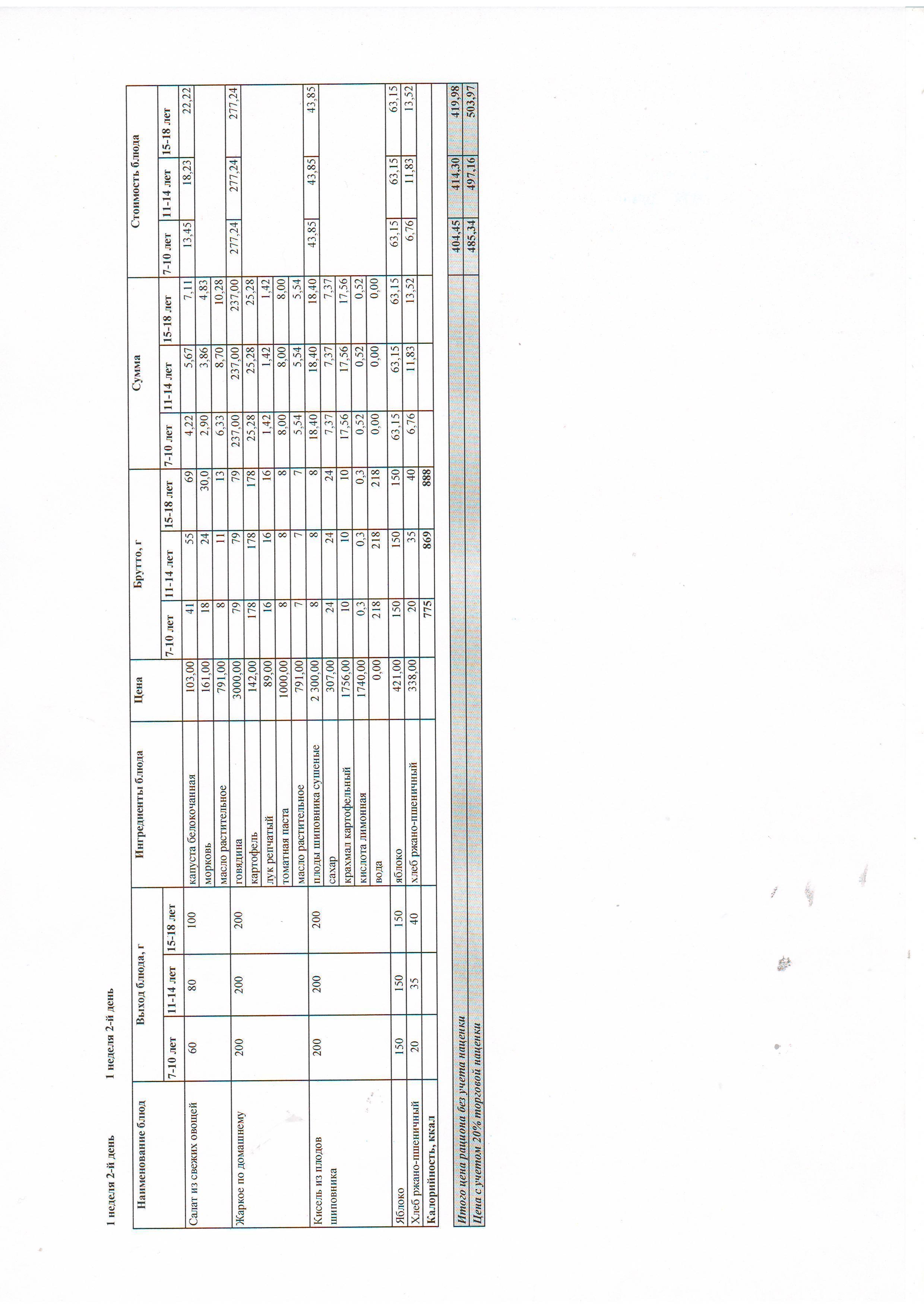 Рекомендованное меню, зима-весна 2021 г. 2 неделя