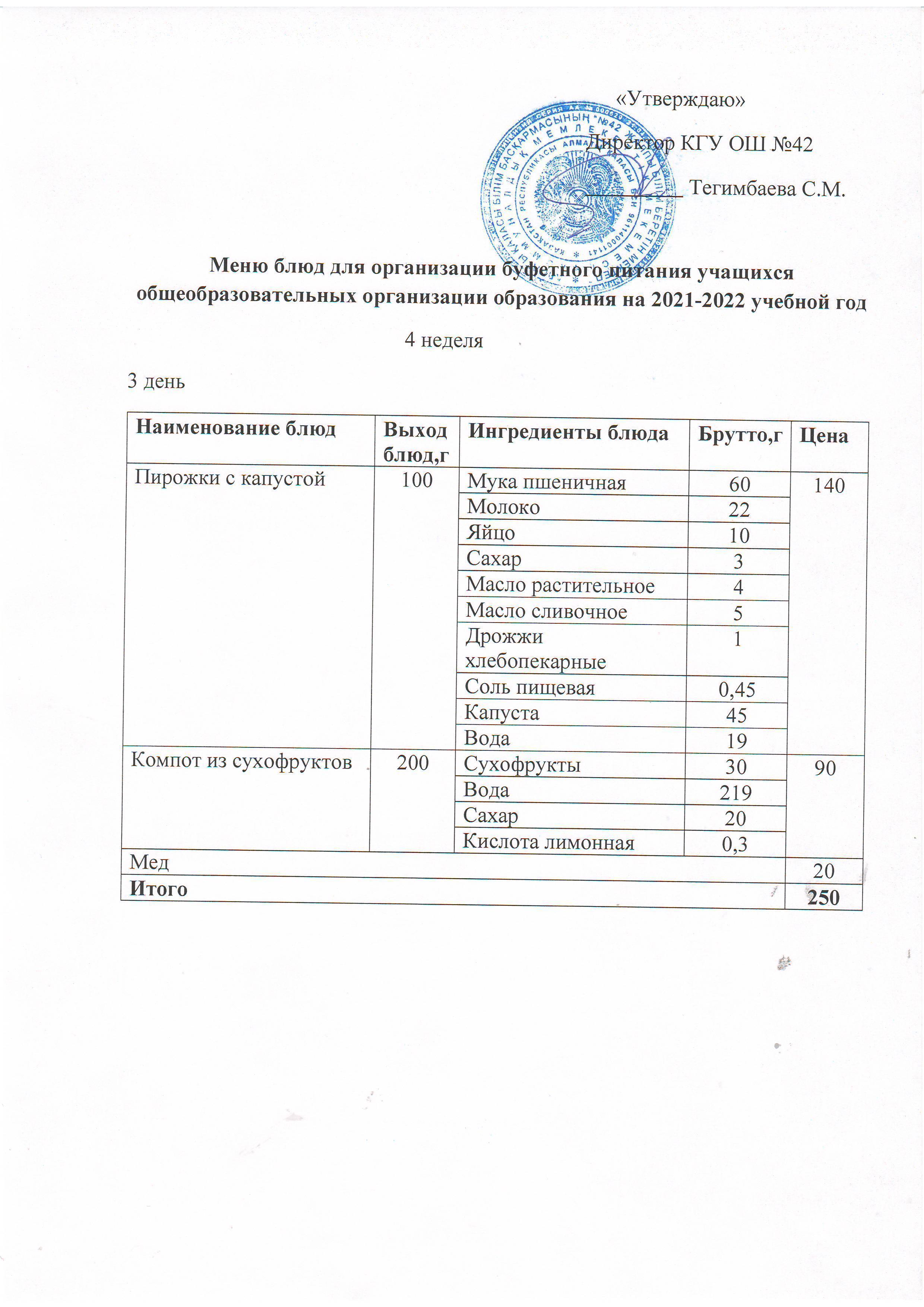 12 қаңтар 2022 0 1 2 3 4 5 Меню блюд для организации буфетного питания учащихся общеобразовательных организации образования на 2021-2022 учебный год