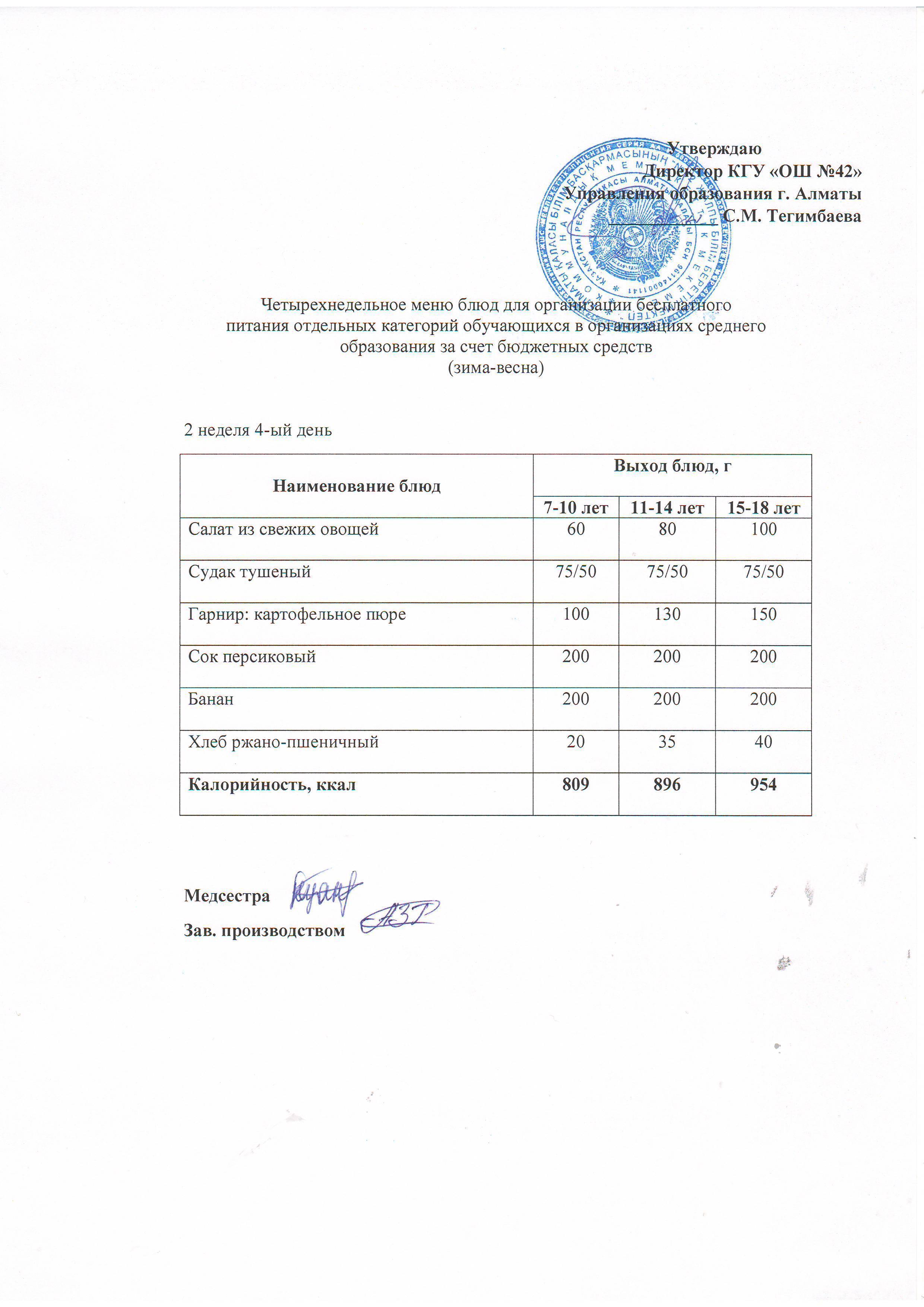 2 апта, 4 күннің ас мәзірі...