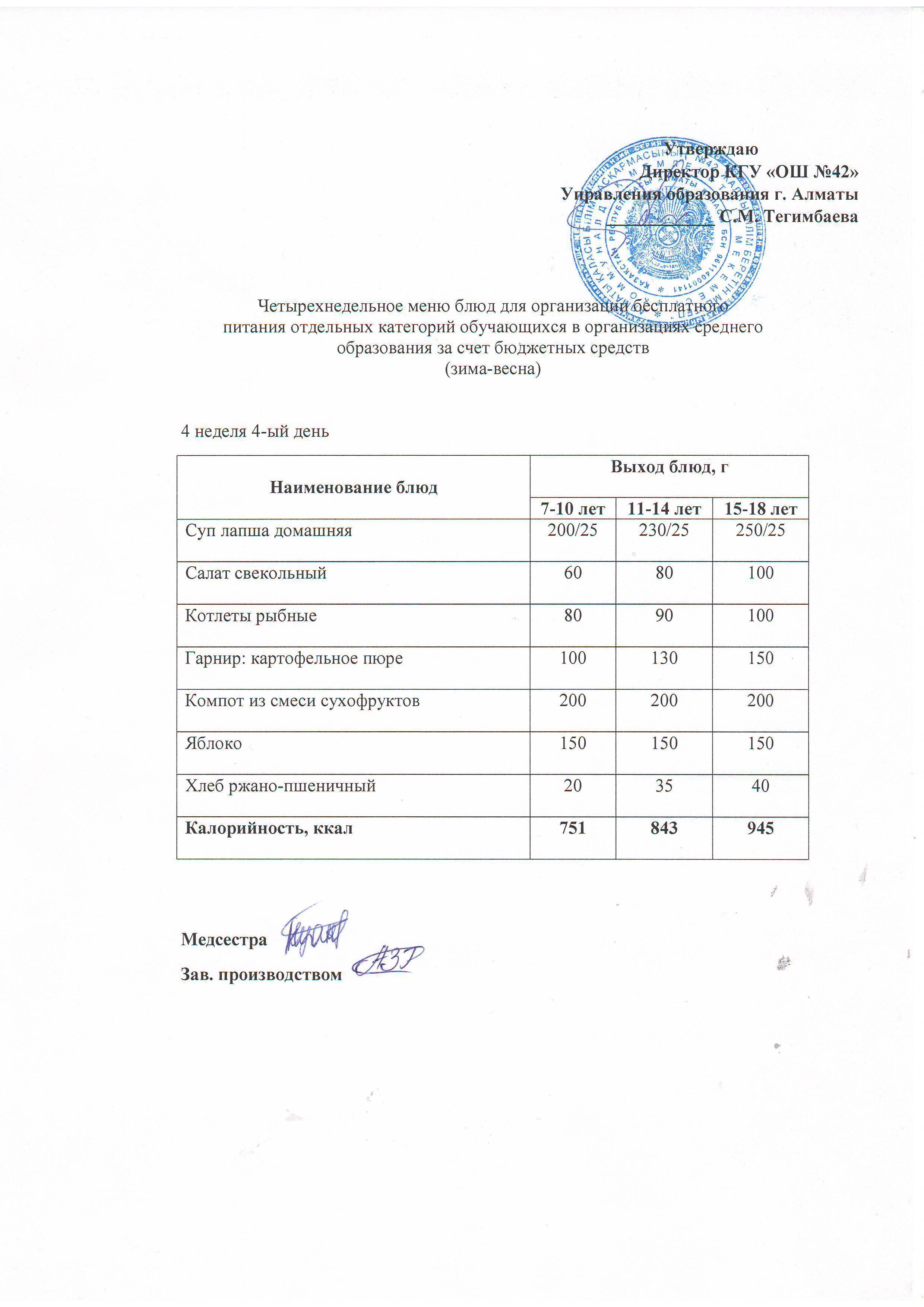 4 апта, 4 күннің ас мәзірі...