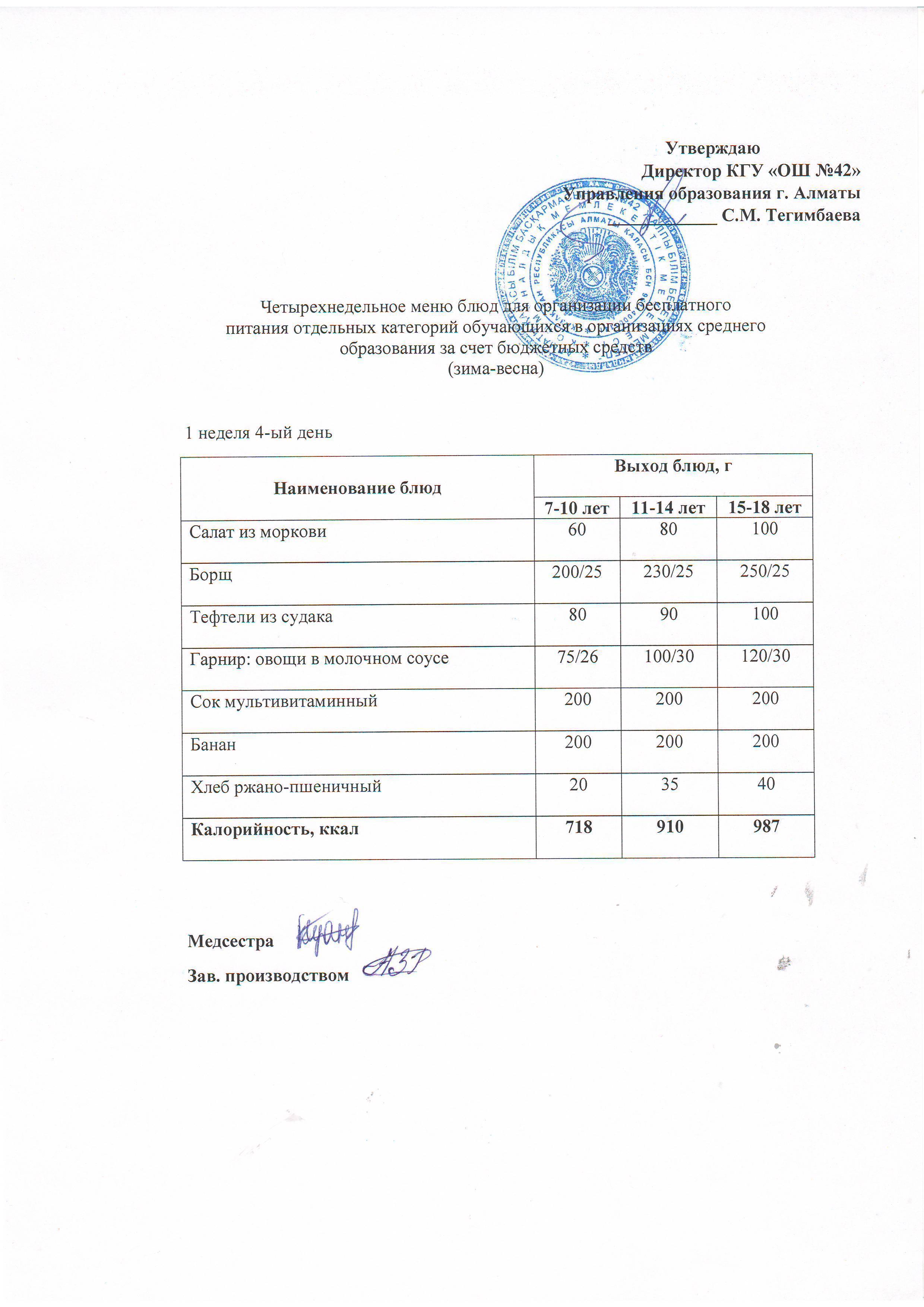 1 апта, 4 күннің ас мәзірі...