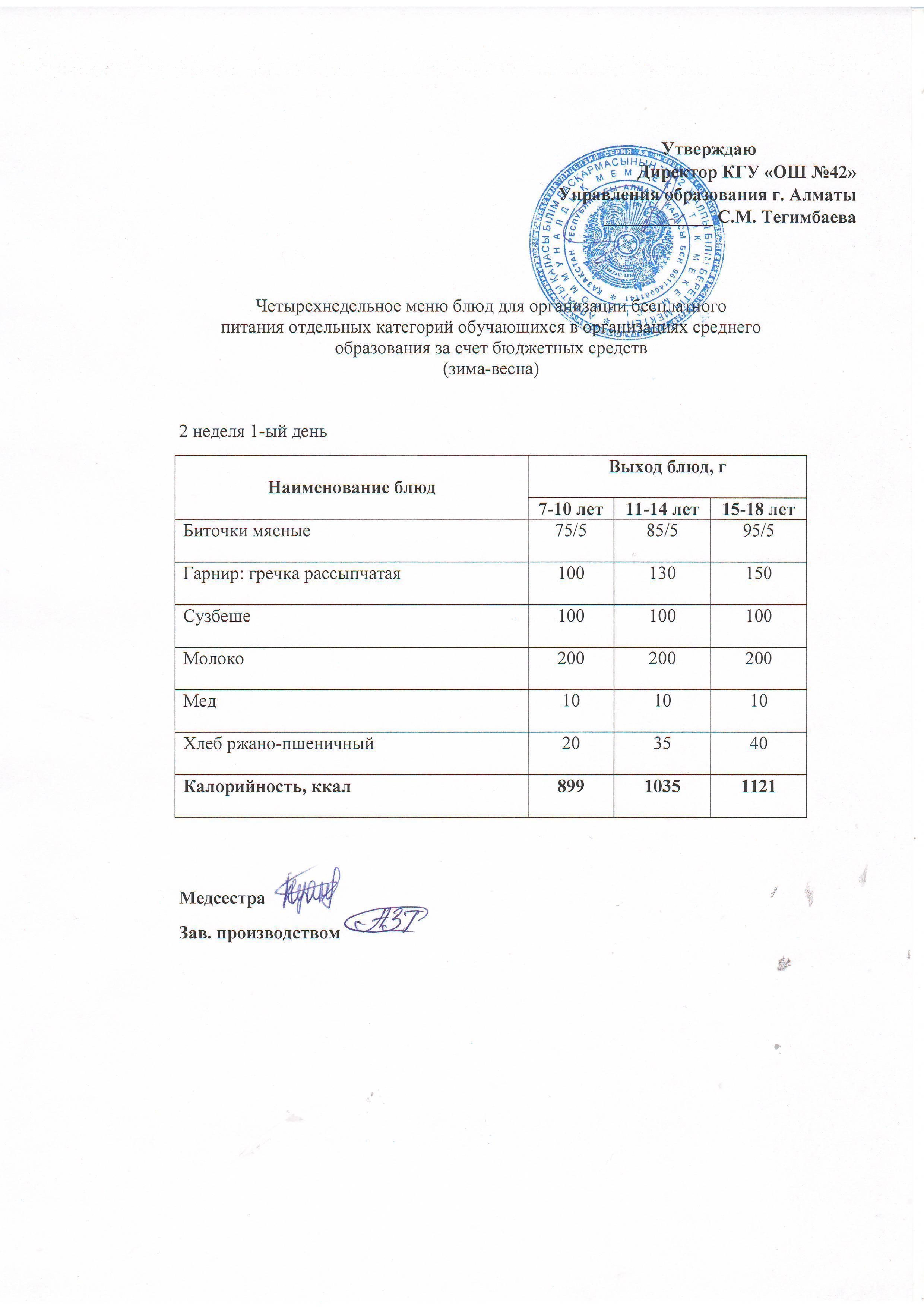 2 апта, 1 күннің ас мәзірі...
