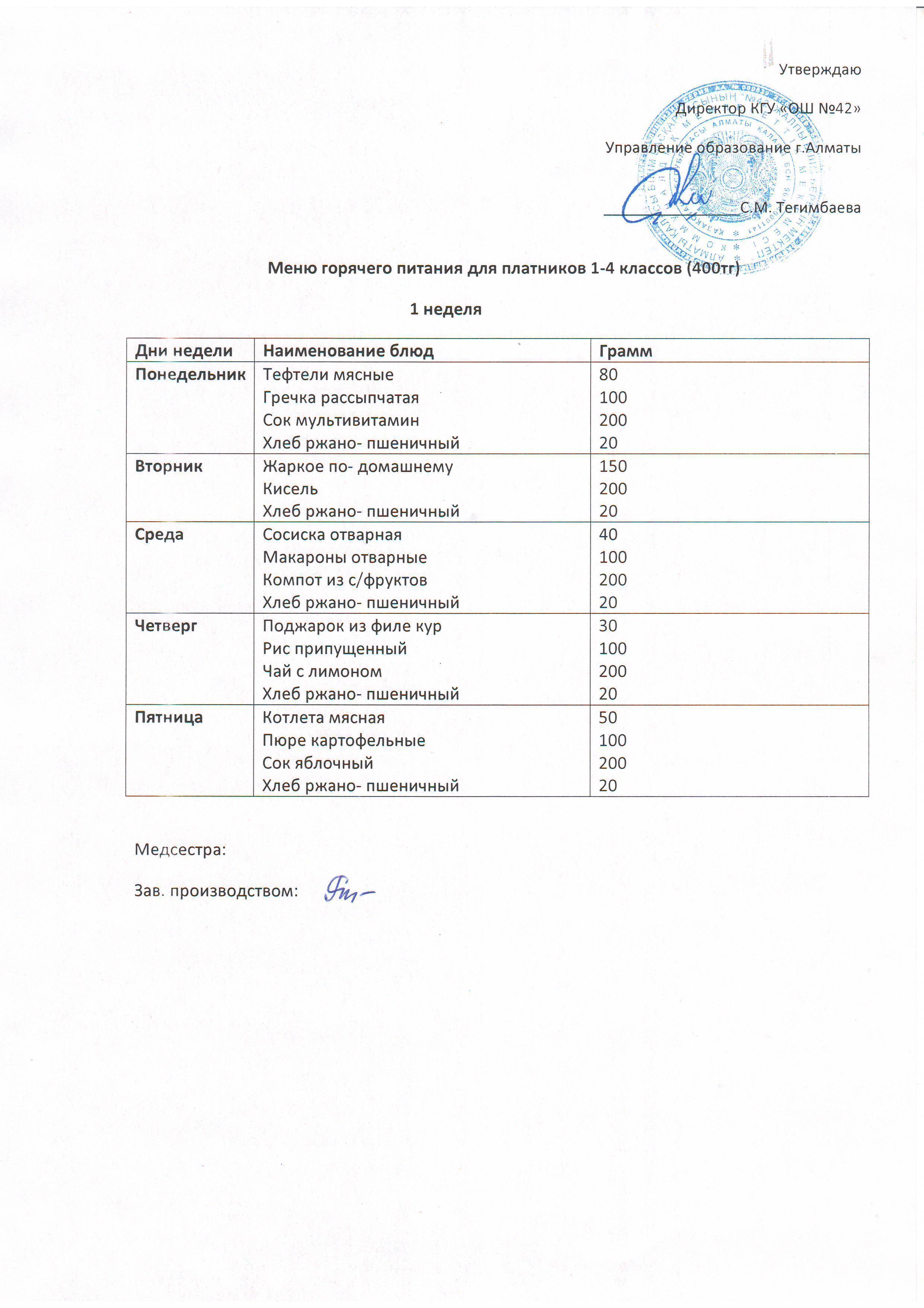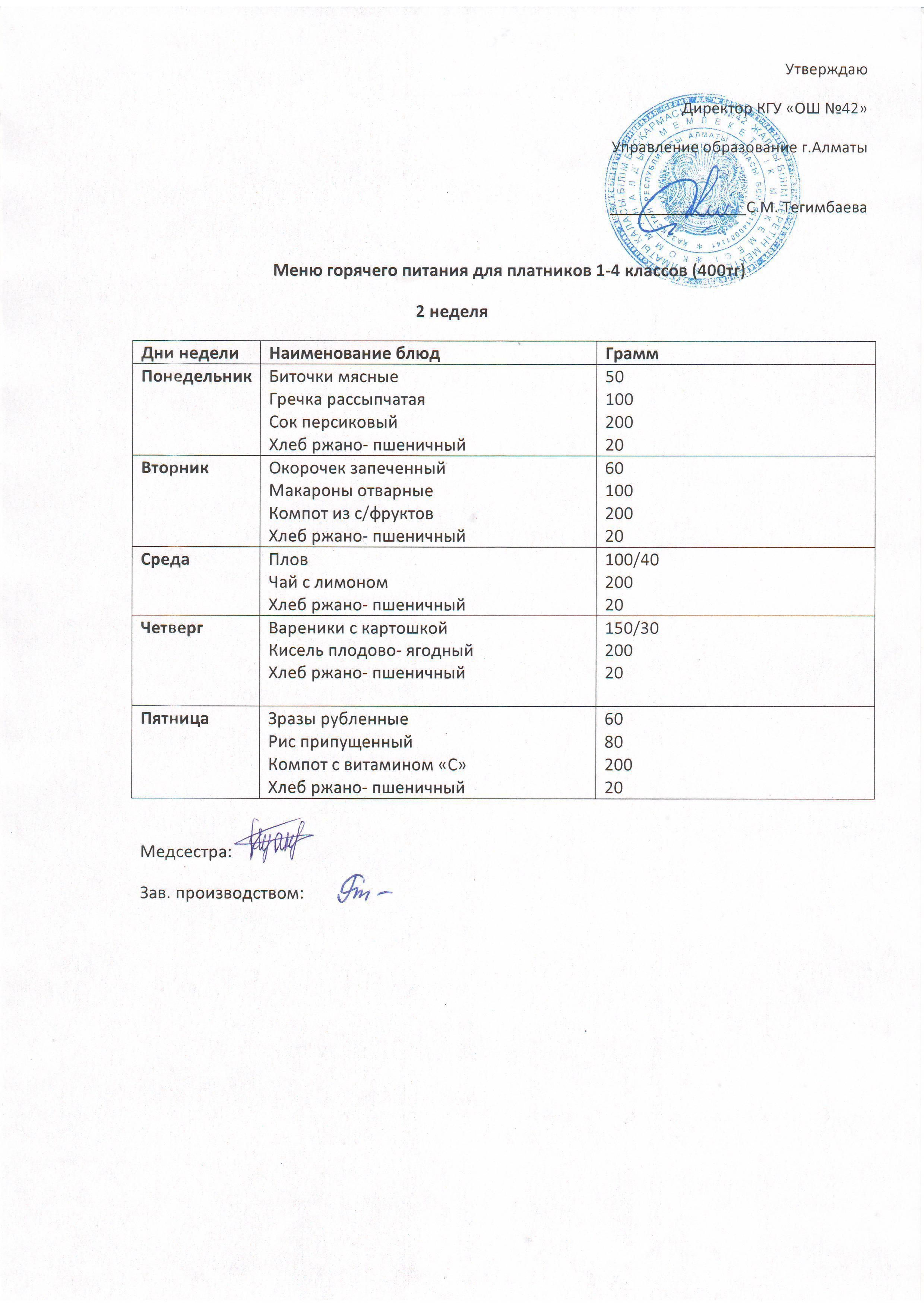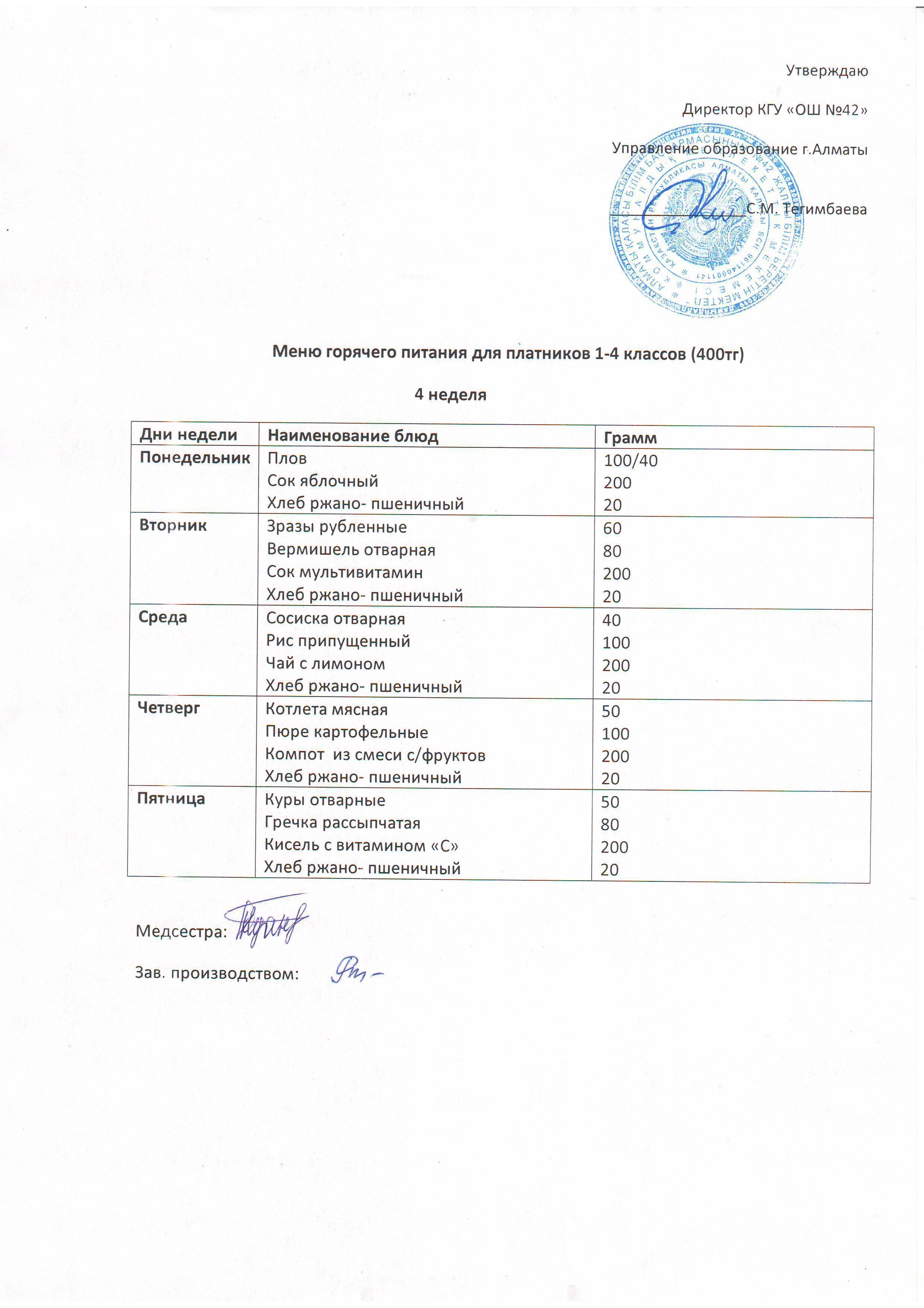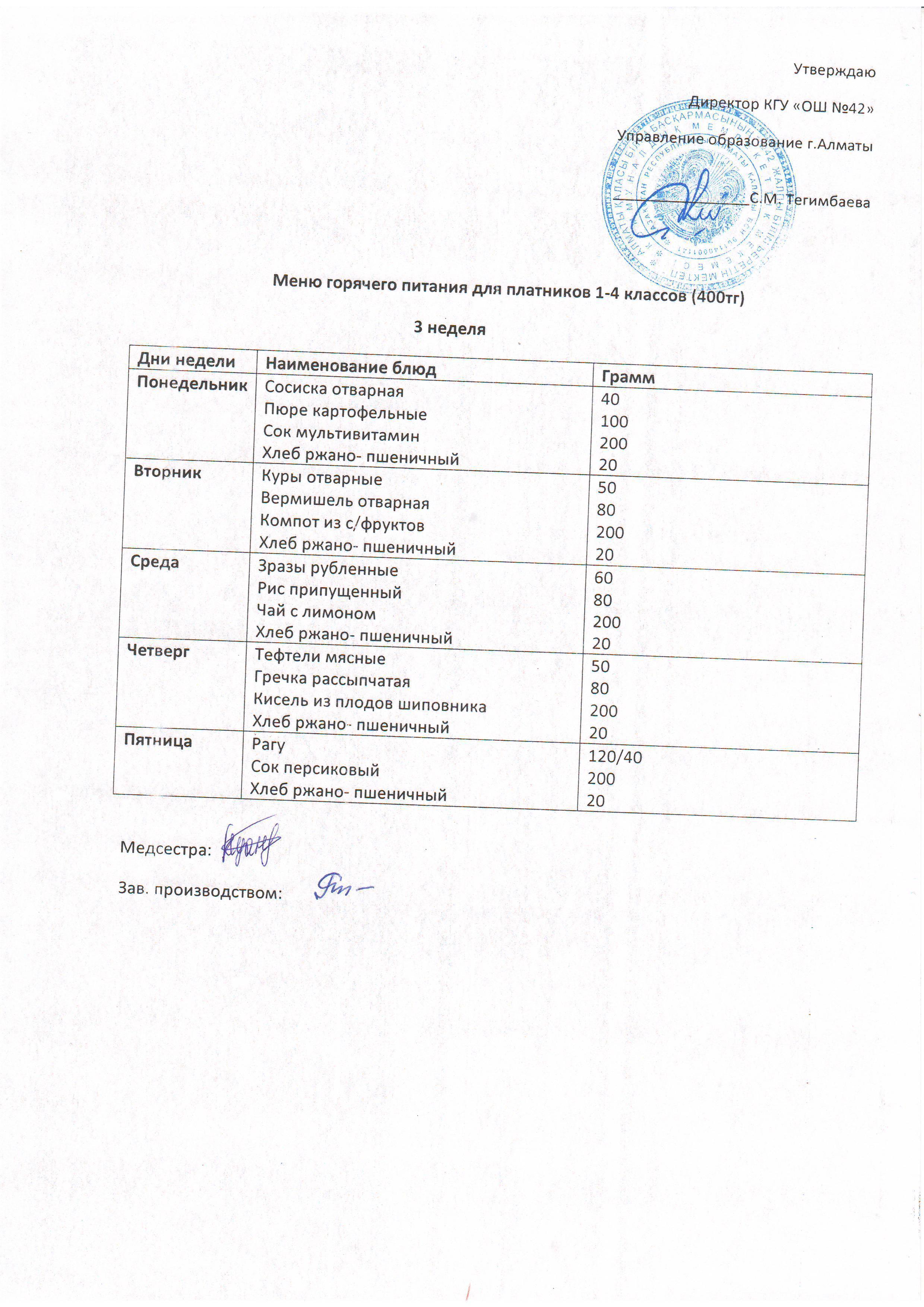 Меню блюд для организации горячего питания учащихся с 1-11 класс