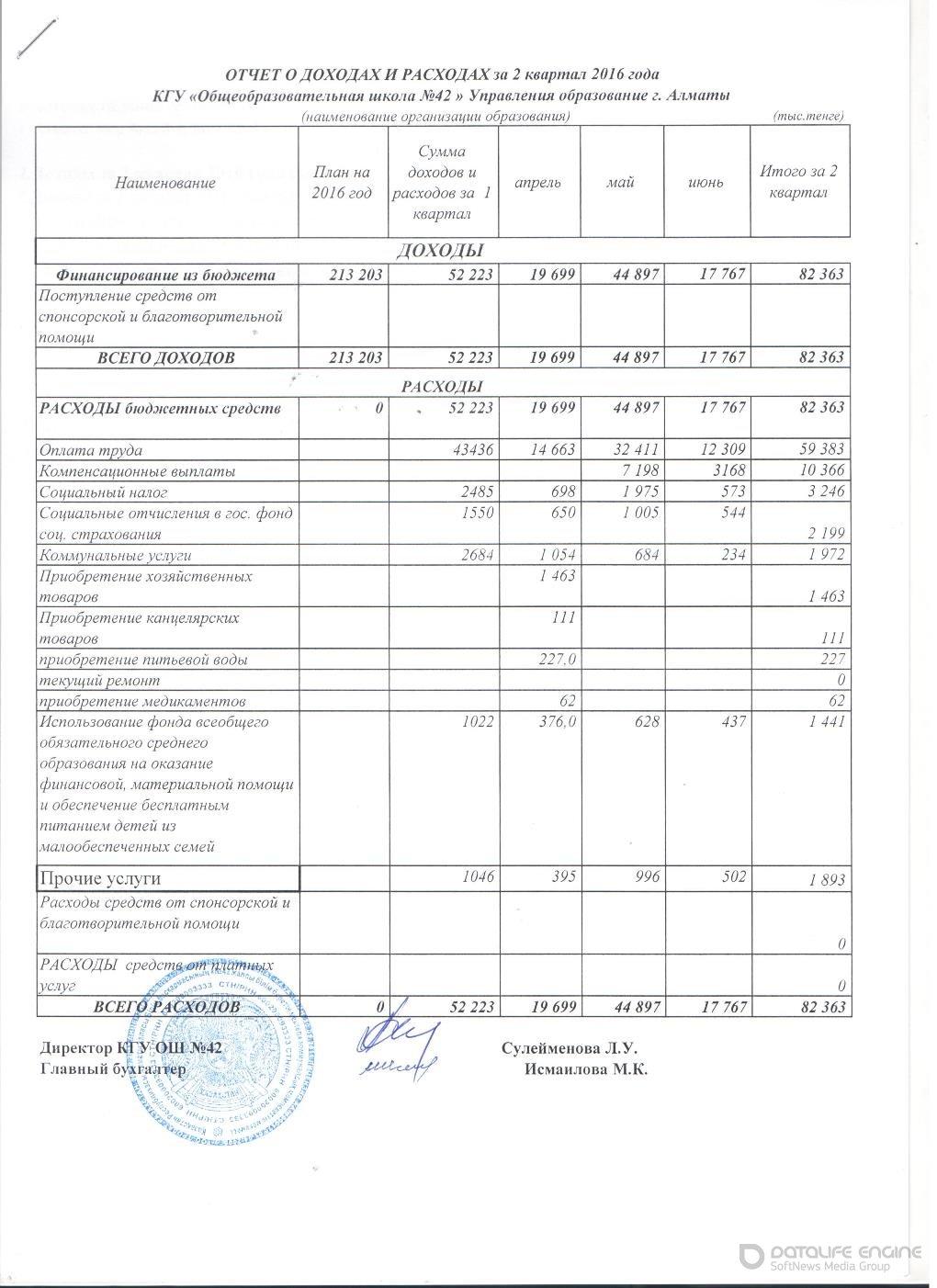 » Отчет о доходах и расходах за 2 квартал 2016 с пояснительной запиской