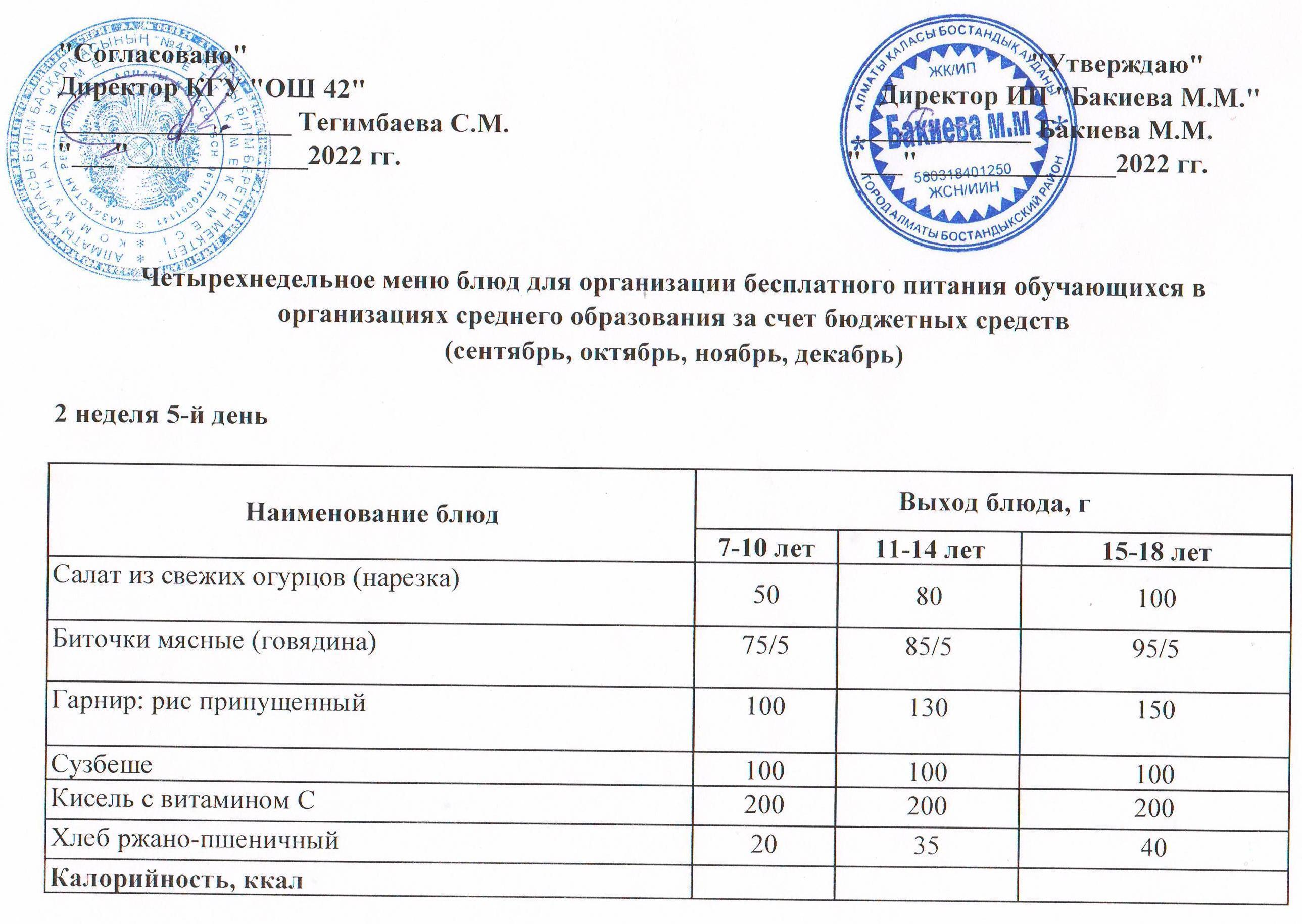 2 апта, 5 күннің ас мәзірі...