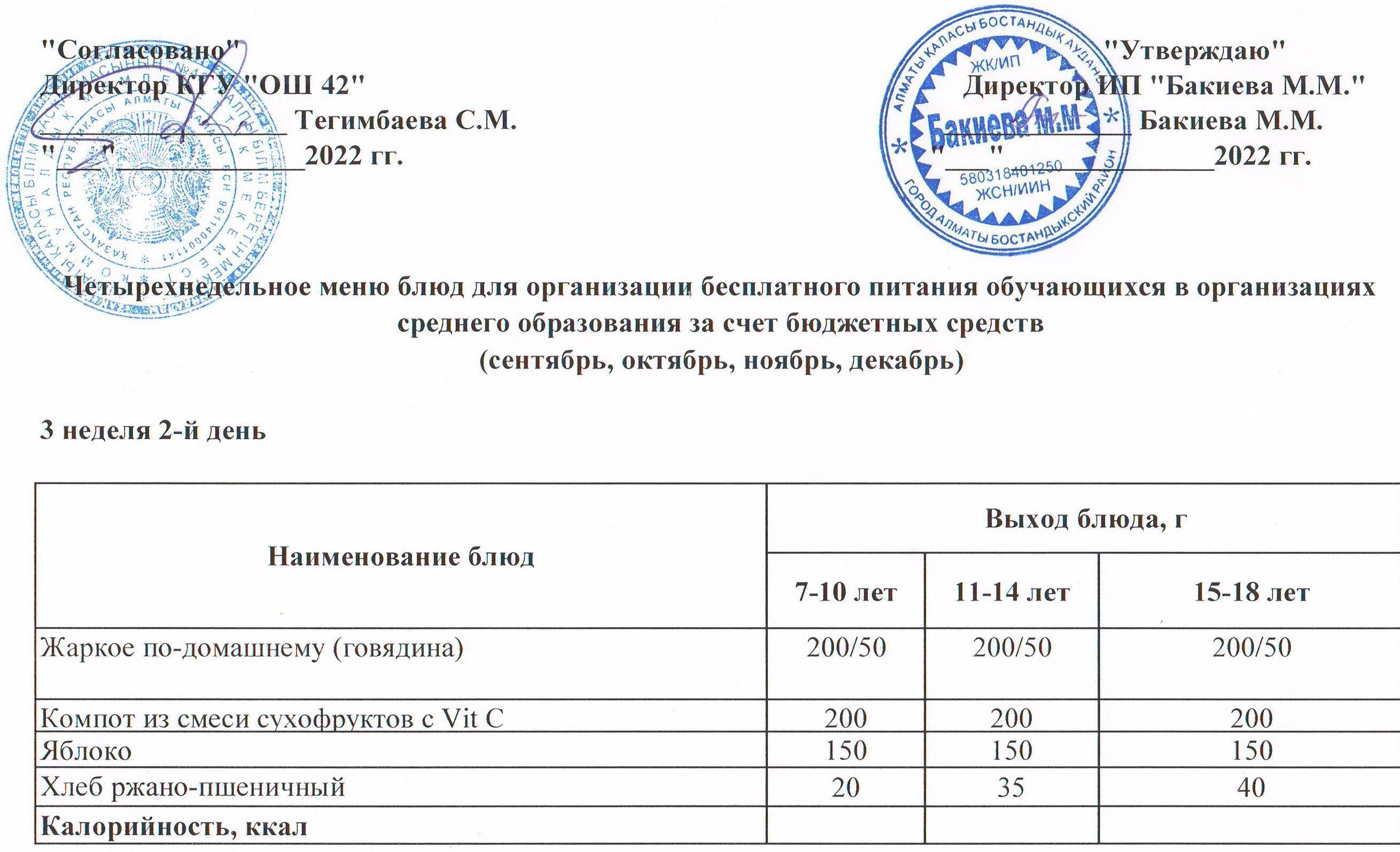 3 апта, 2 күннің ас мәзірі...