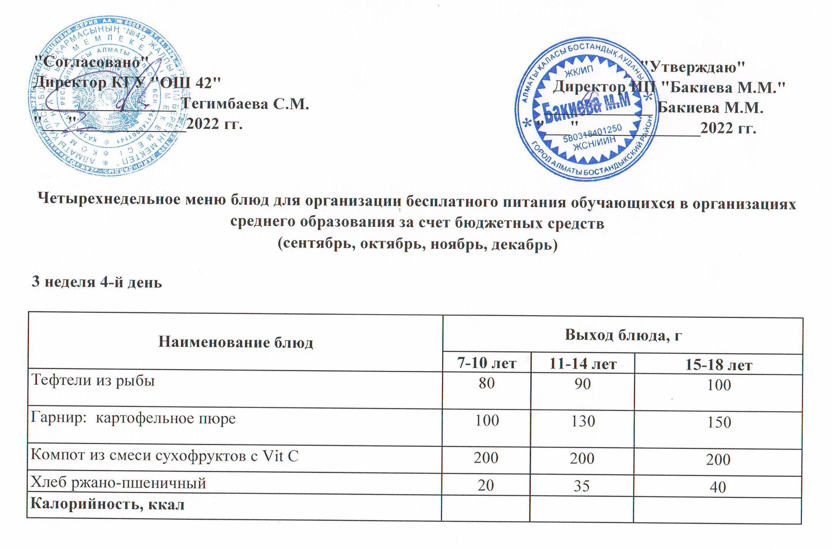 3 апта, 4 күннің ас мәзірі...