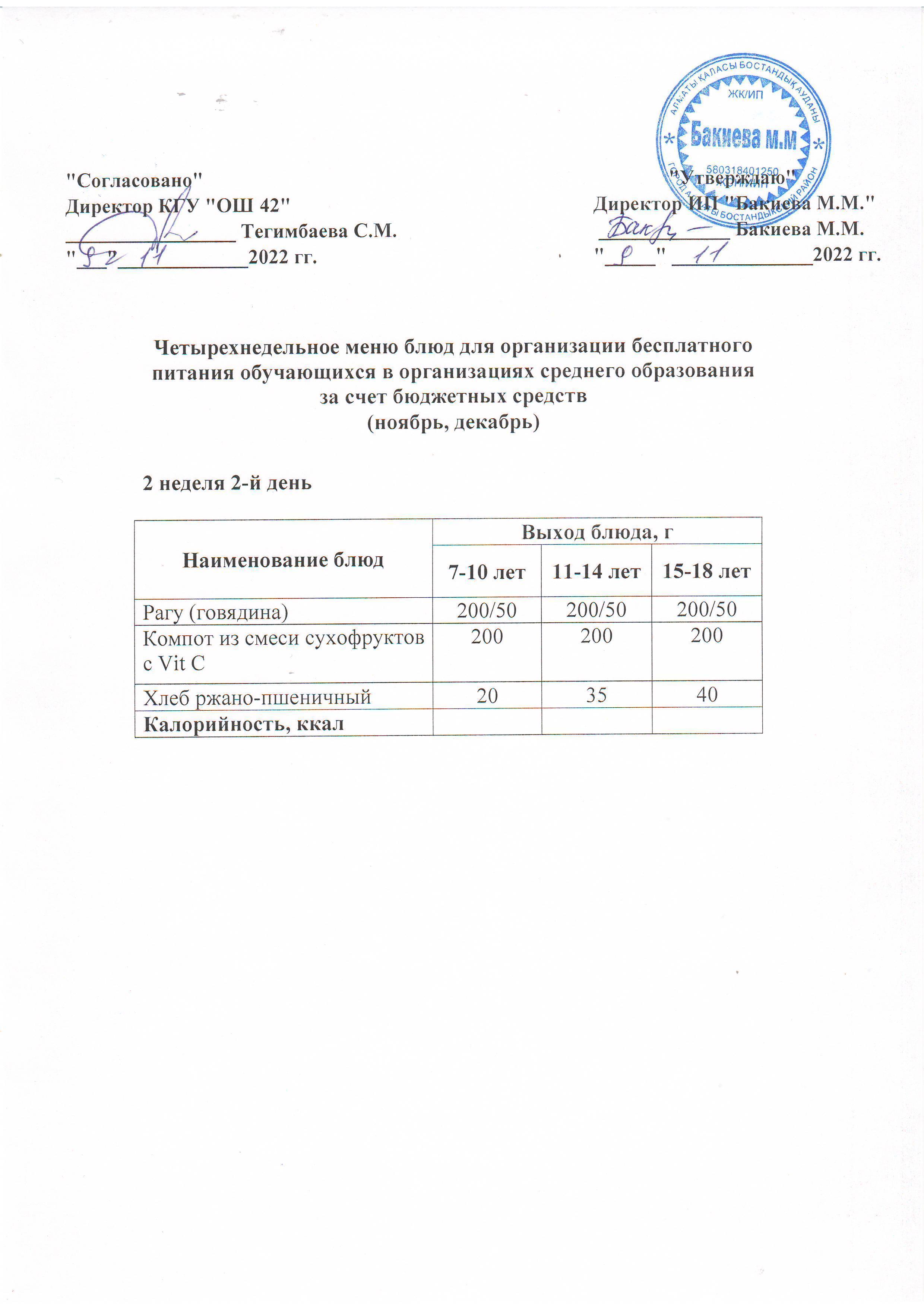 2 апта, 4 күннің ас мәзірі...