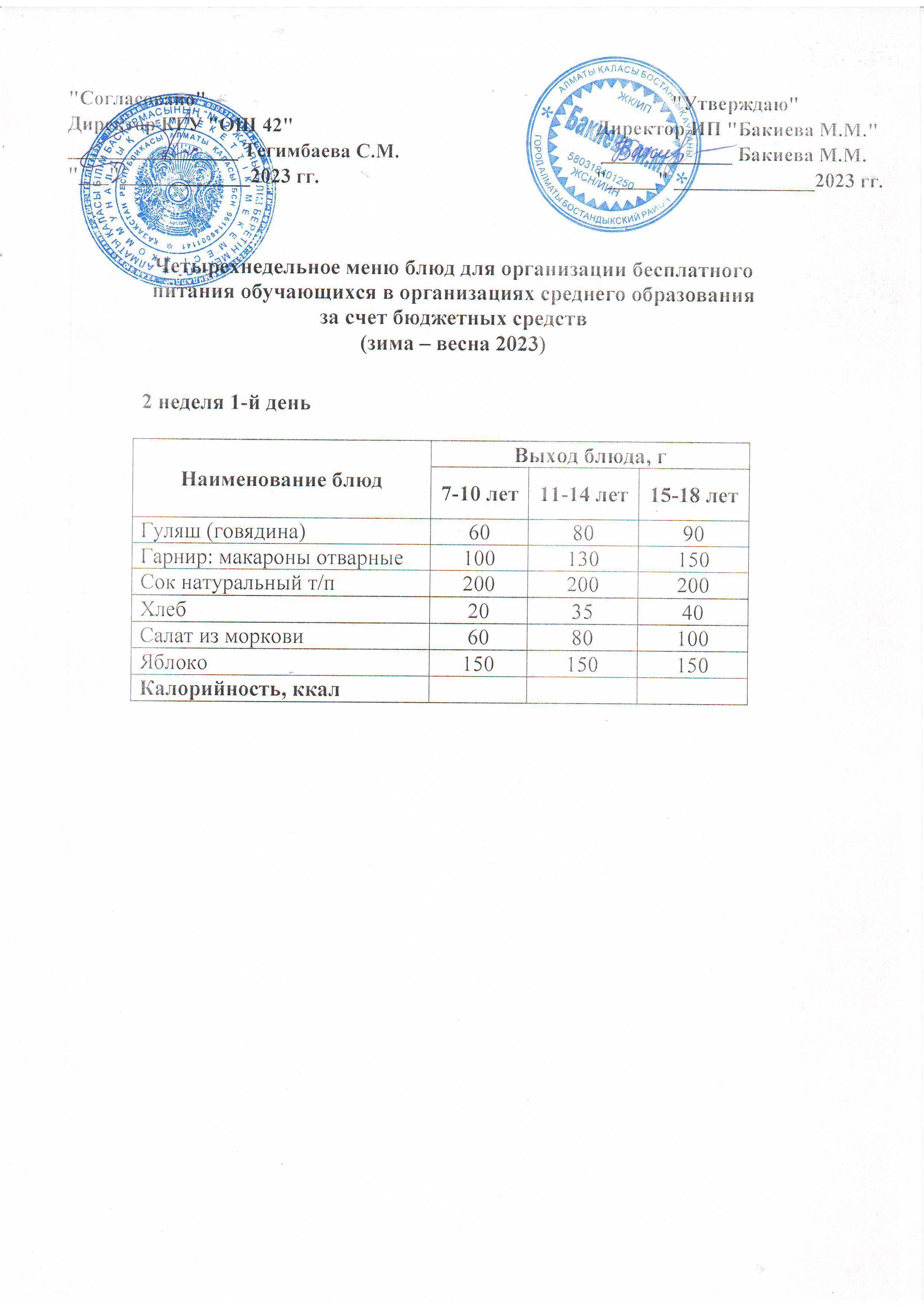 2 апта, 1 күннің ас мәзірі...