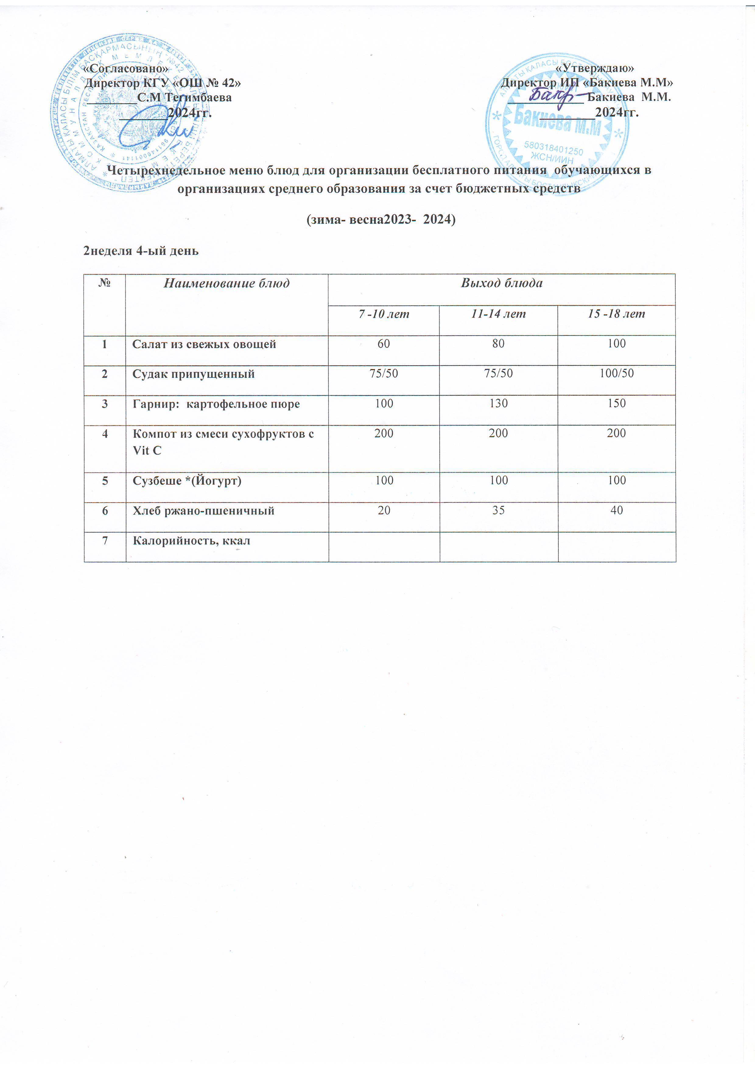 2 апта, 4 күннің ас мәзірі...