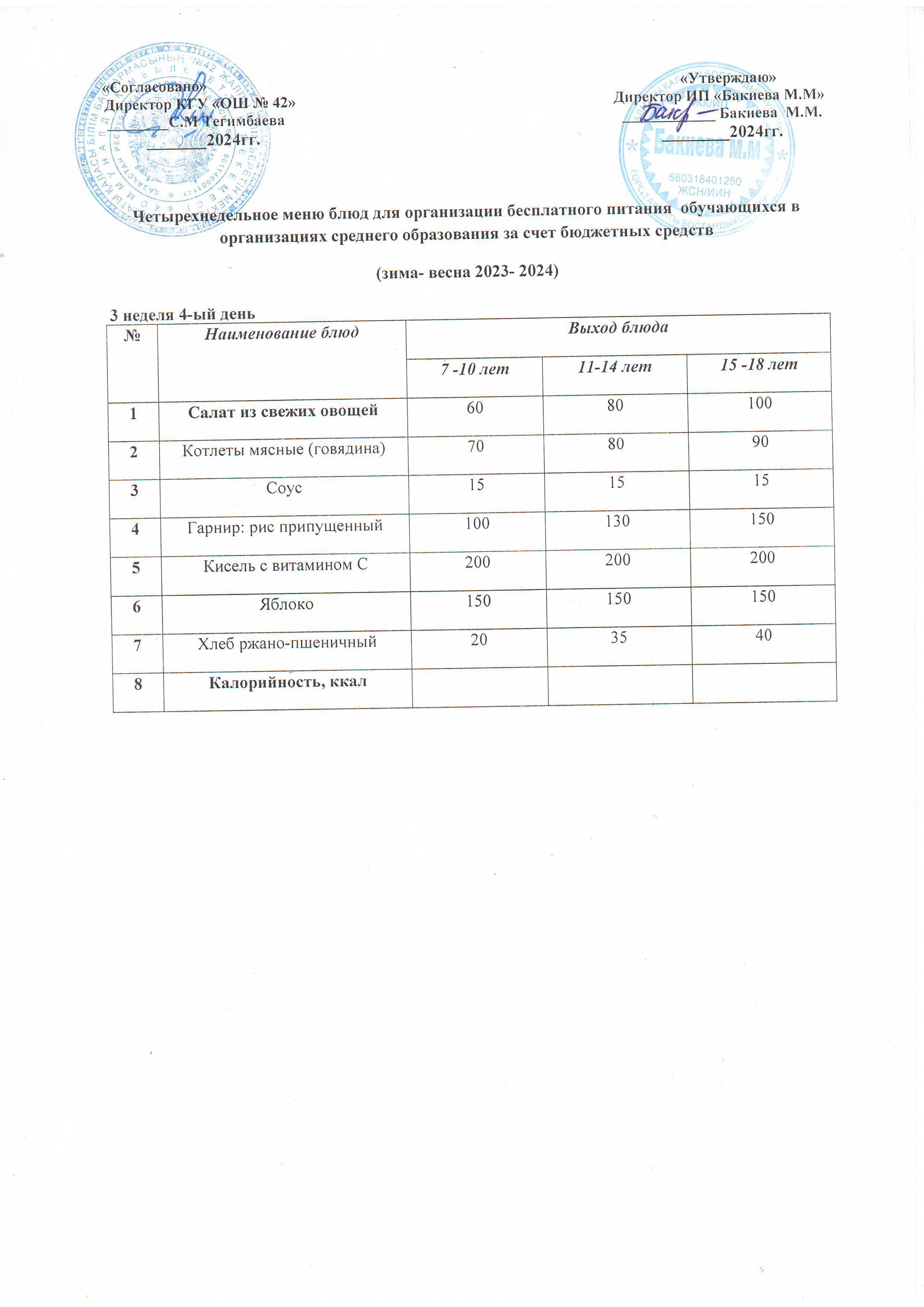 3 апта, 4 күннің ас мәзірі...