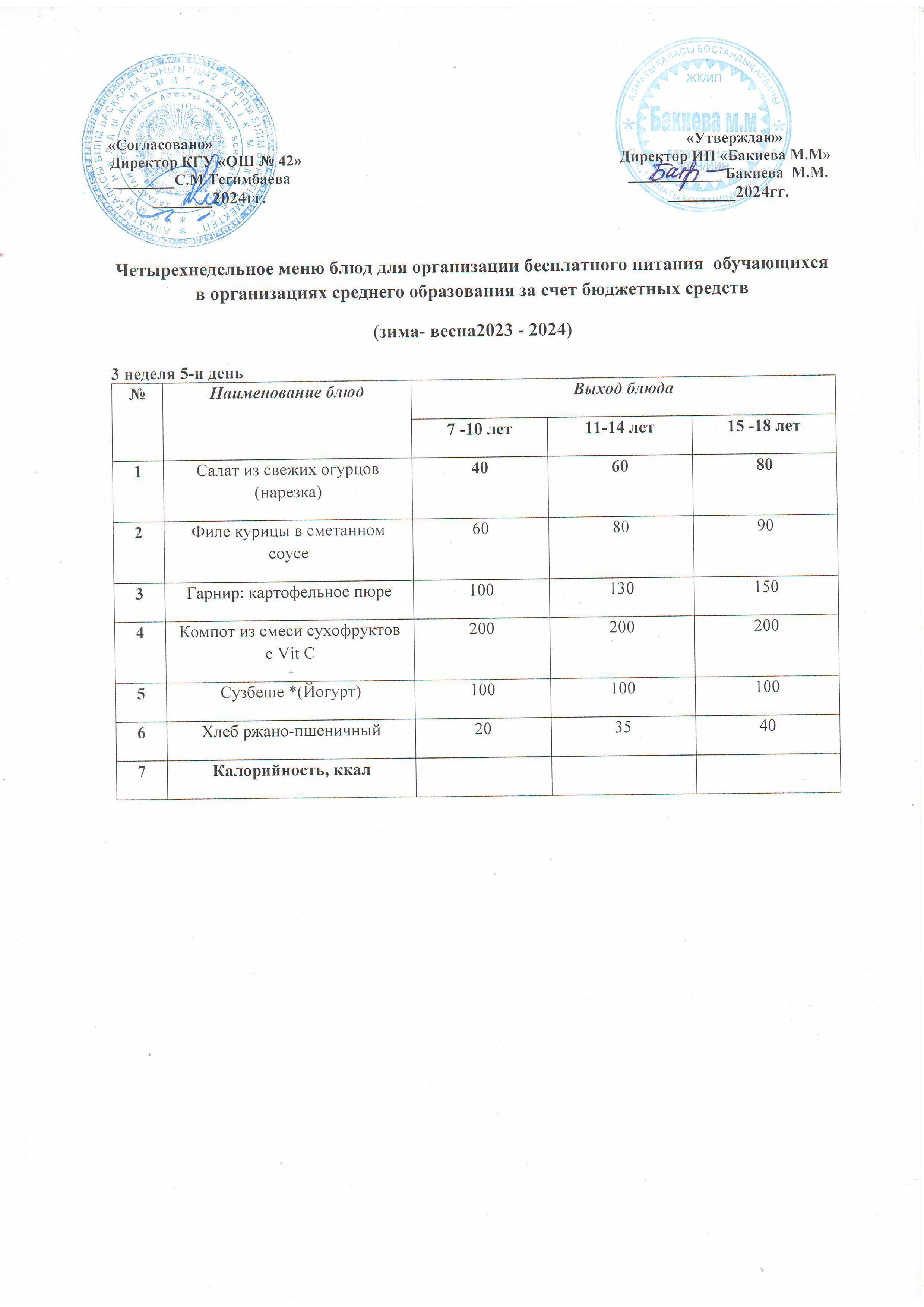 3 апта, 2 күннің ас мәзірі...