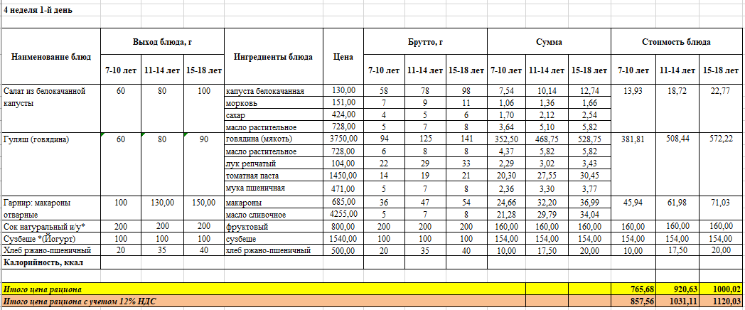 29 қараша 2024 0 1 2 3 4 5 Четырехнедельное меню блюд для организации бесплатного питания обучающихся в организациях среднего образования за счет бюджетных средств зима-весна 2024-2025 учебный год
