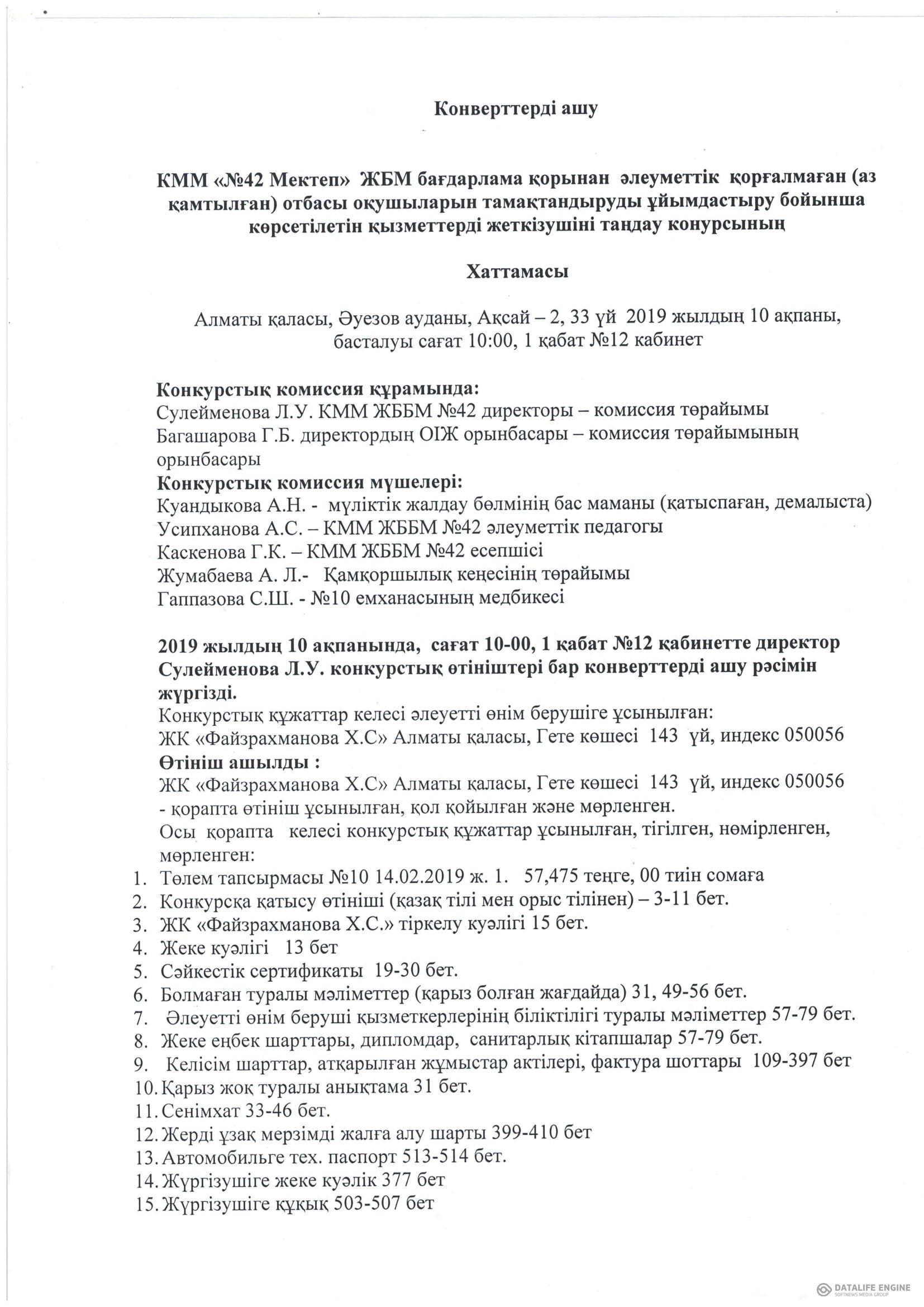 » Протокол вскрытия конвертов конкурса