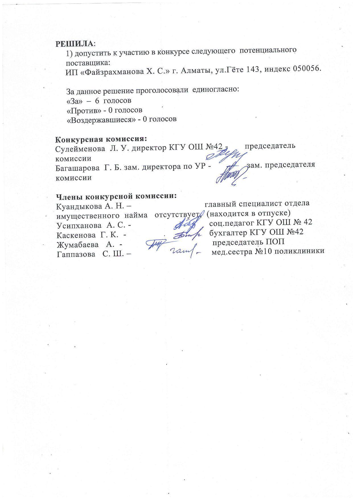 Протокол об итогах конкурса
