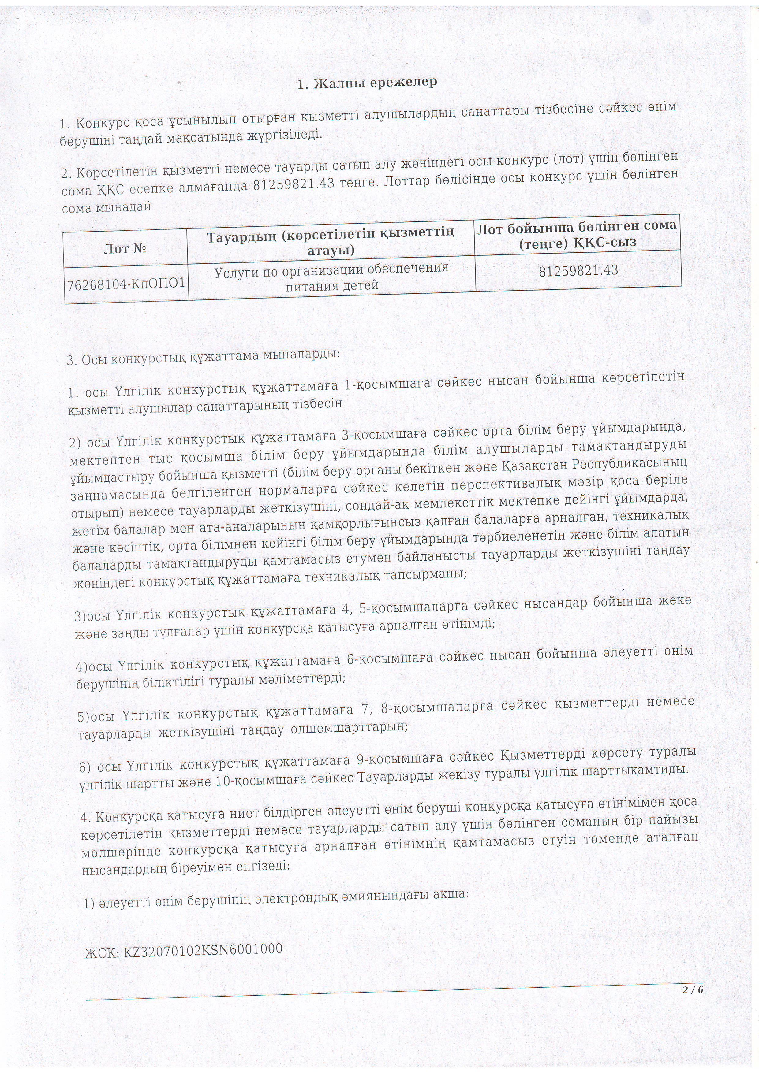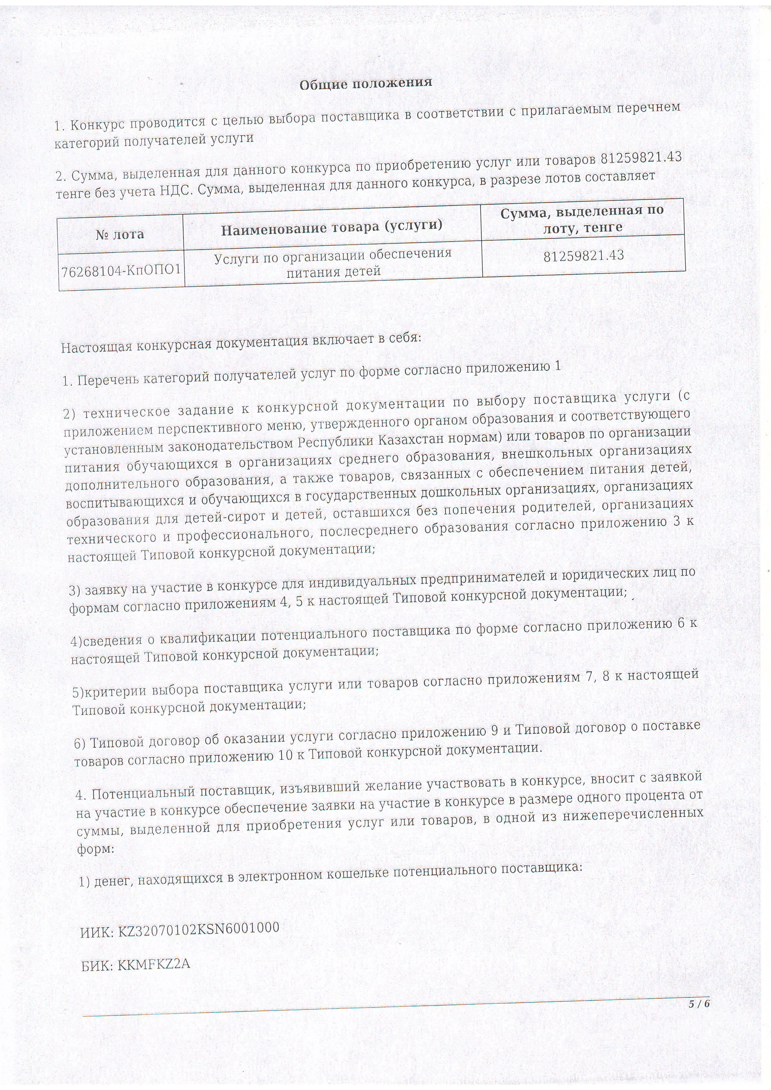 » Жеткізушіні таңдау жөніндегі үлгілік конкурстық құжаттама