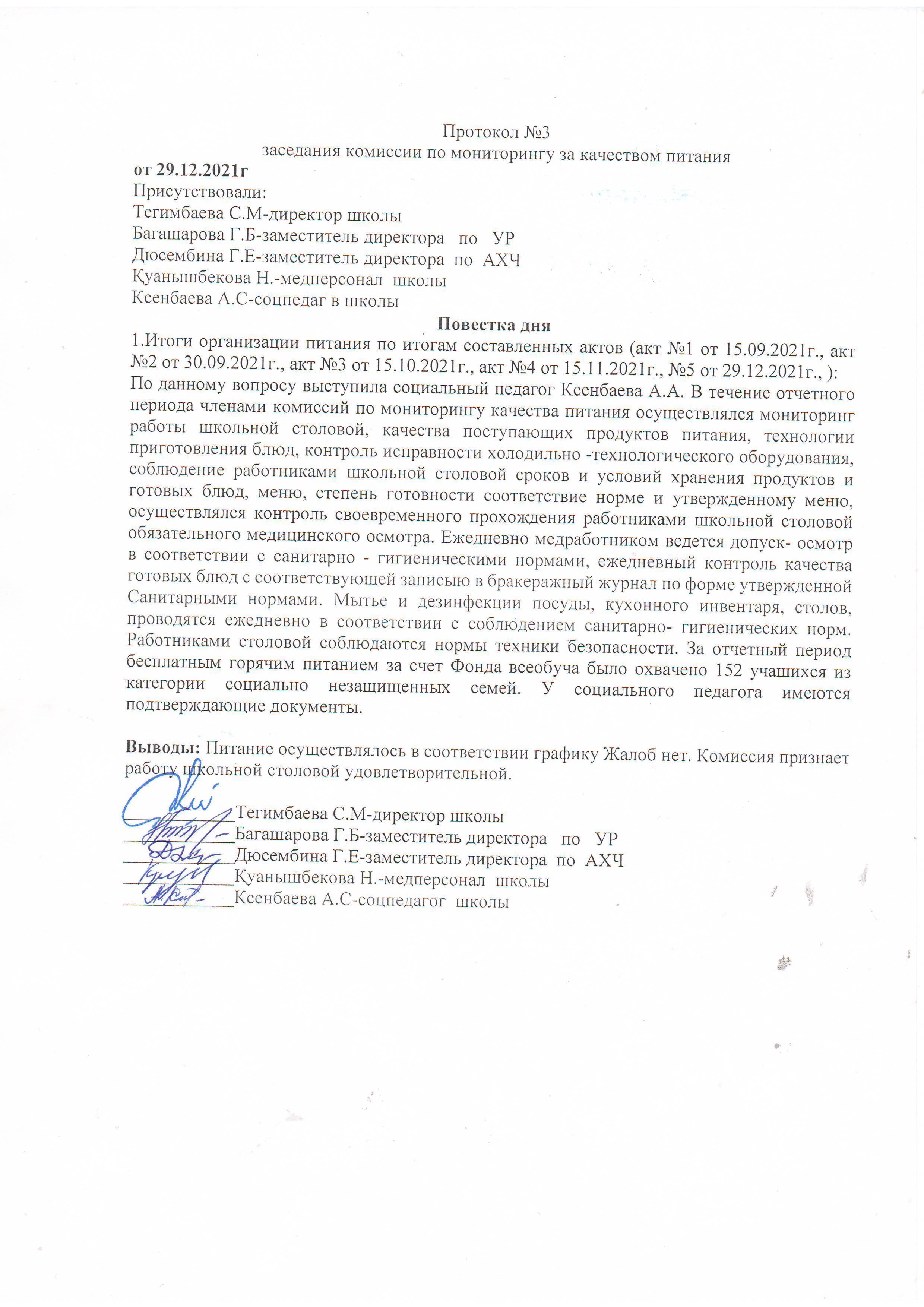 Протокол №3 заседания комиссии по мониторингу за качеством питания