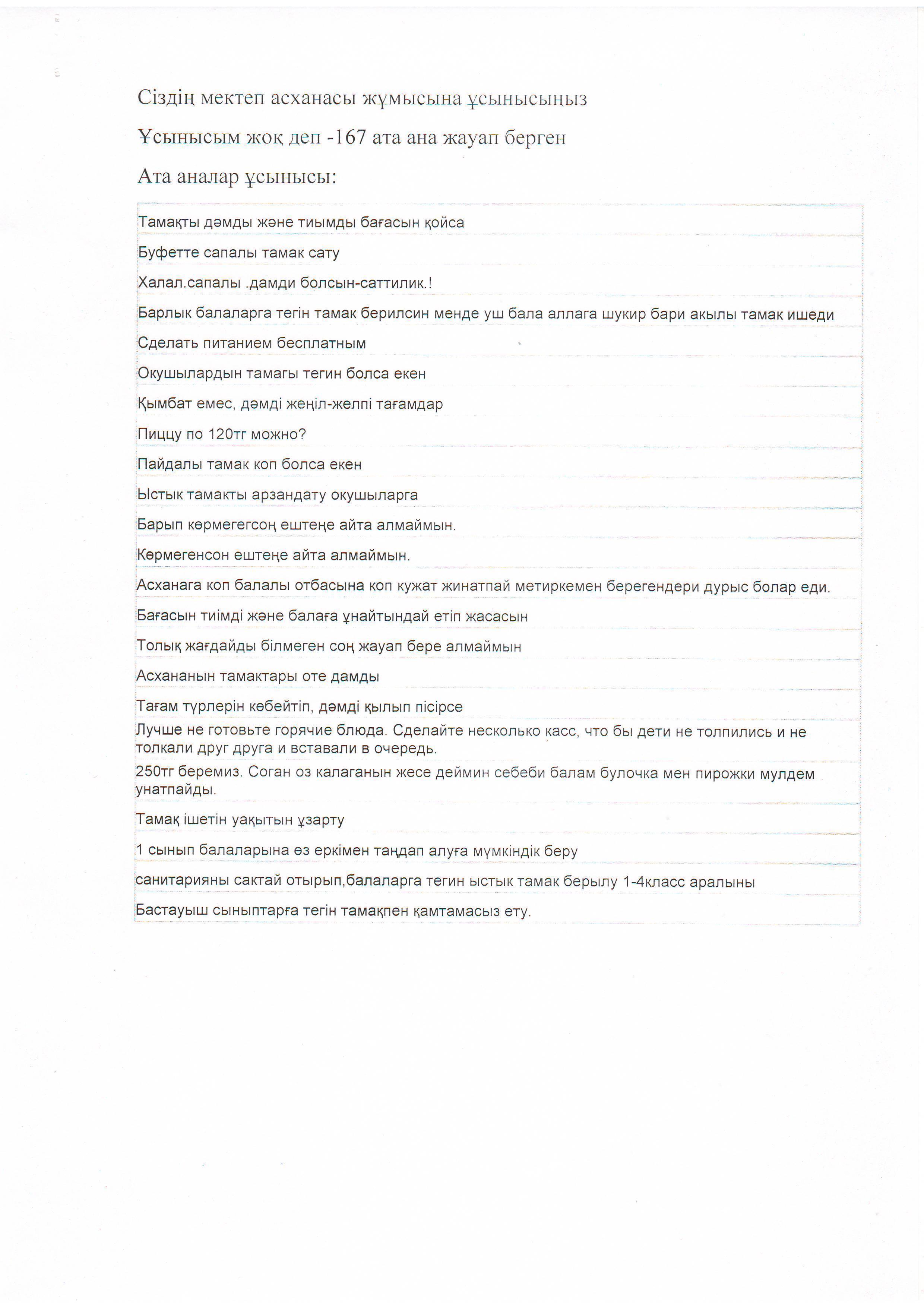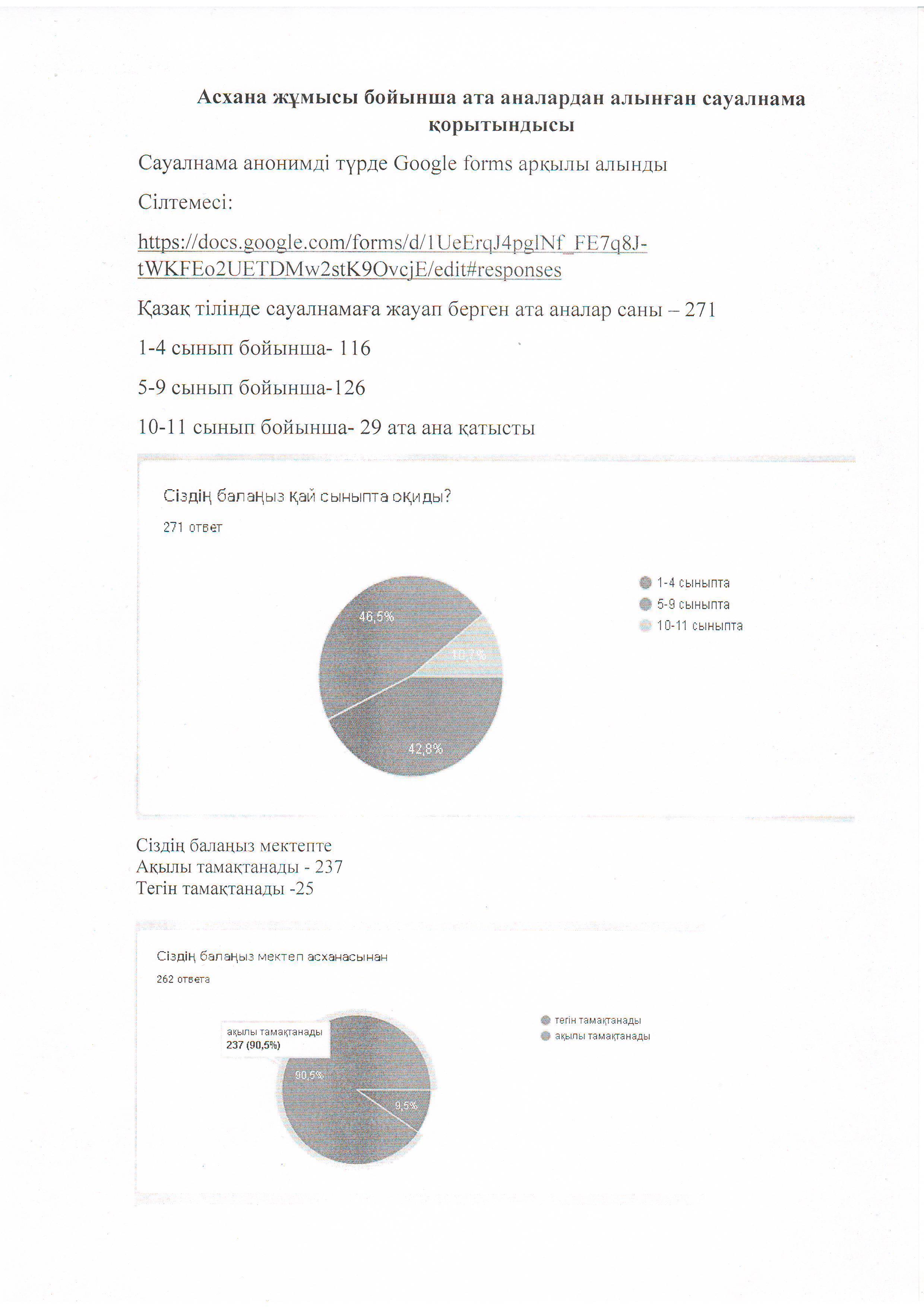 30 наурыз 2022 0 1 2 3 4 5 Мектеп асханасы жұмысы бойынша сауалнама қорытындысы. Ата-аналардан алынған сауалнама қорытындысы.